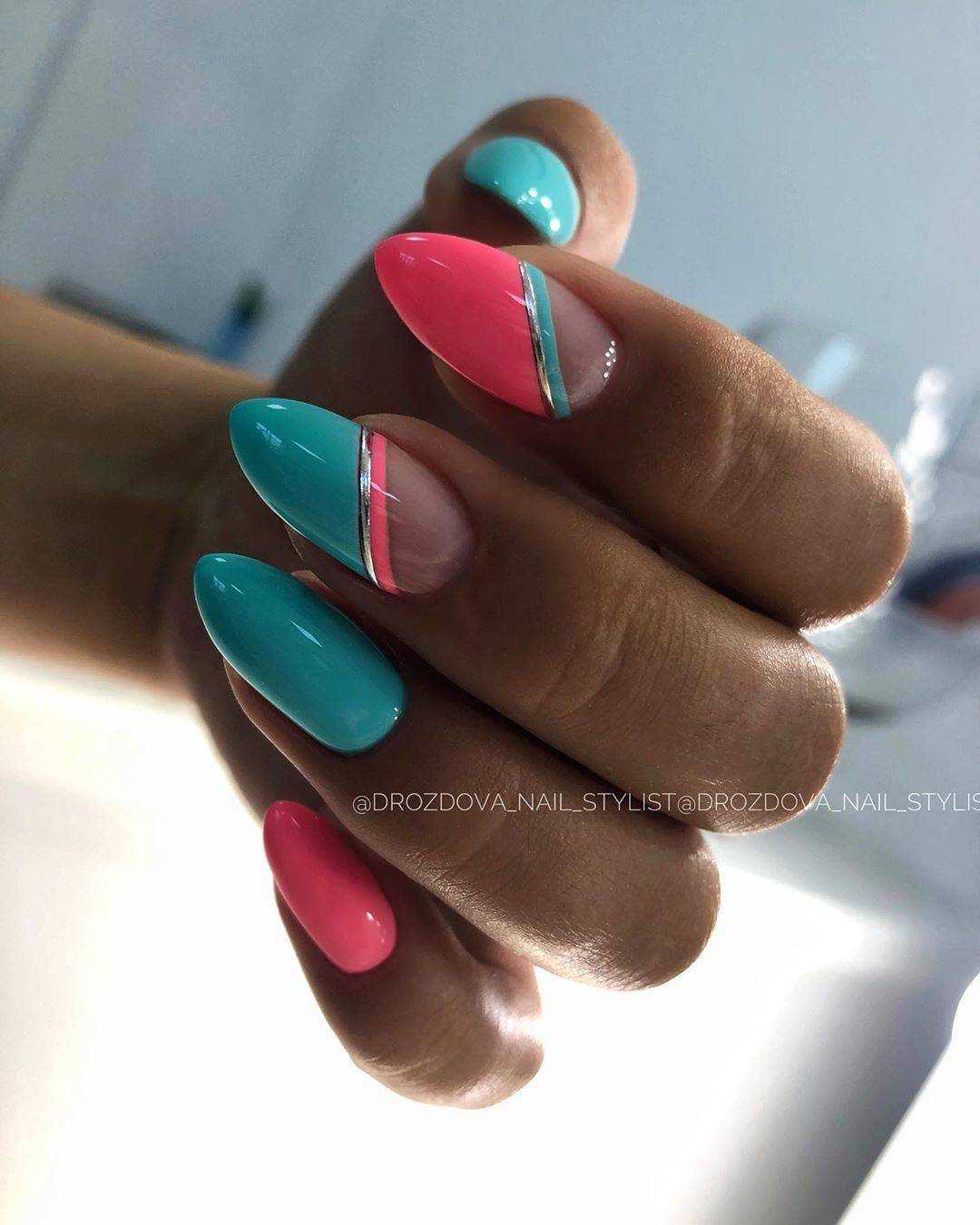 В летние месяцы девушкам хочется легких образов и ярких красок. Сезон с июня по август в 2023 году станет исключение для отказа от разноцветных гель-лаков. В создании френча можно использовать даже кислотные цвета. К наиболее стильным вариантам сочетания относятся: