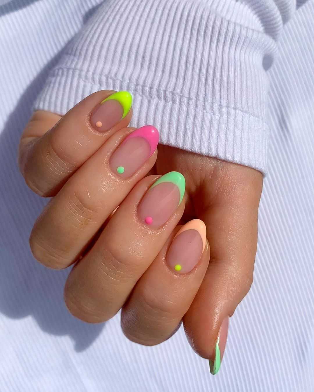 Летний френч — это яркие цвета и оттенки, привлекающие больше внимания к ногтям.