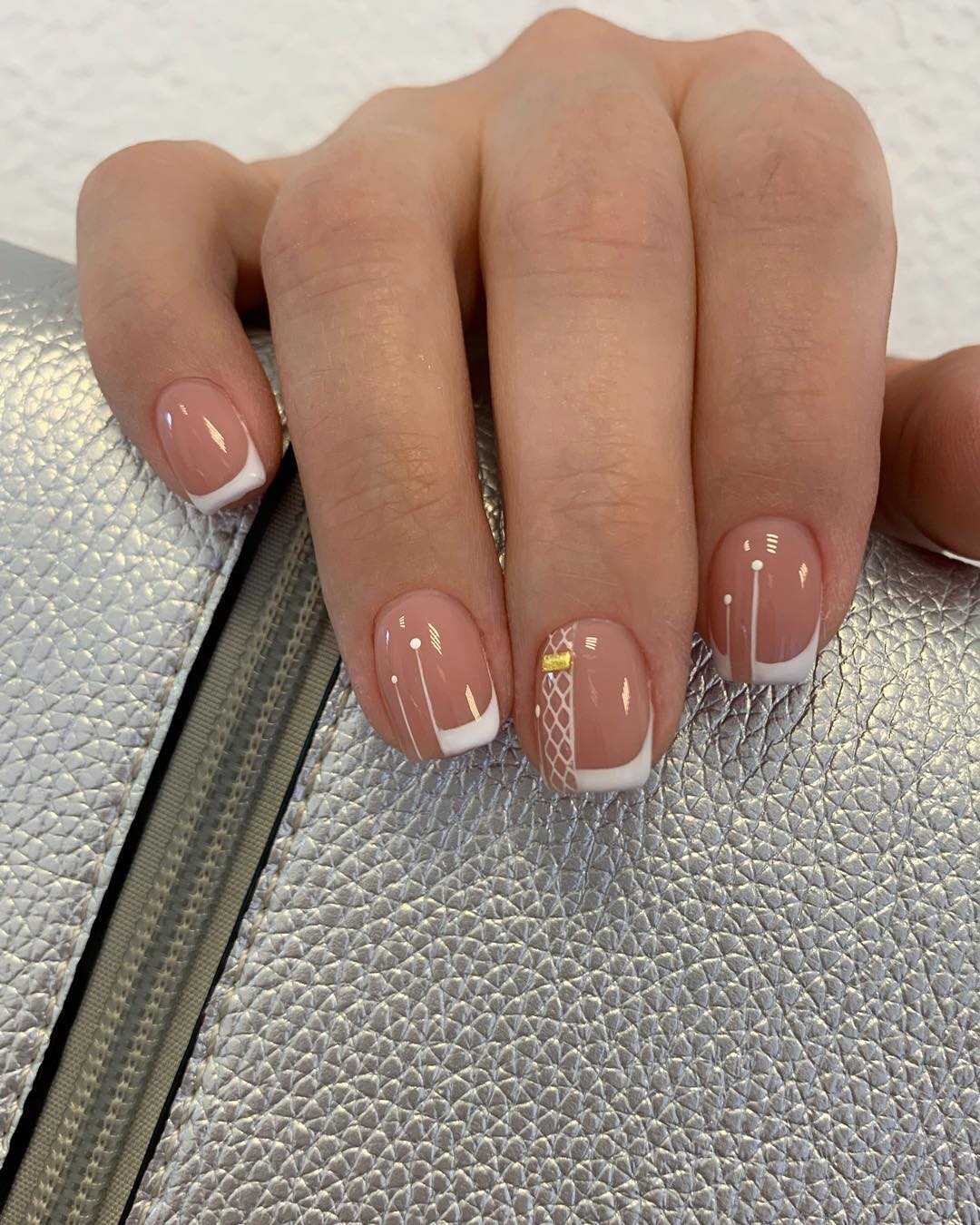 - при сочетании френча с дополнительным дизайном выбирать минималистичные узоры;