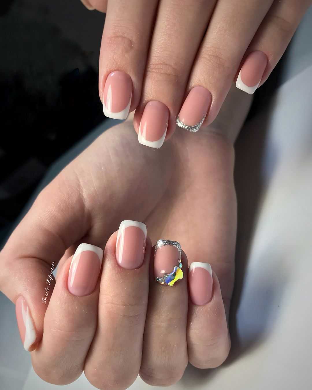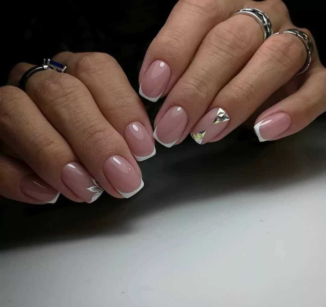 На коротких овальных ногтях идеально будет смотреться классический французский маникюр. При его создании следует придерживаться правил: