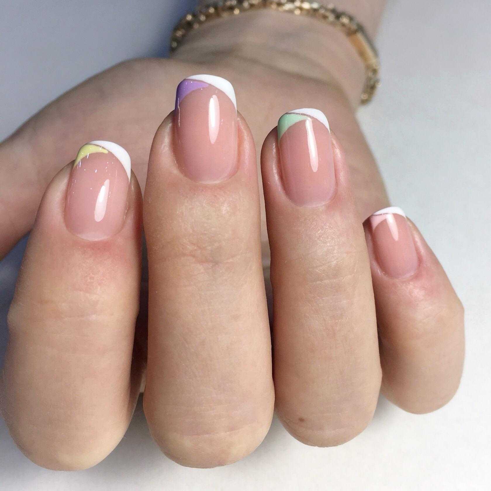 Разноцветный френч на коротком миндале может выглядеть нелепо и вульгарно. В предстоящих сезонах на такой форме не следует делать маникюр с использованием более 3 оттенков гель-лака.