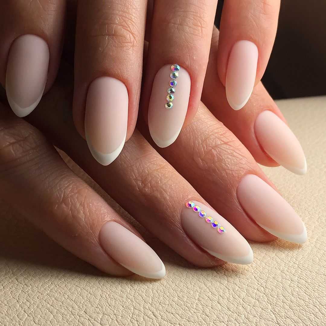 Нежная и природная форма, сочетающаяся с любым нейл-артом. Она зрительно вытягивает полные пальцы, помогая рисунку раскрыться и заиграть. Френч на такой основе выглядит утонченно и стильно.