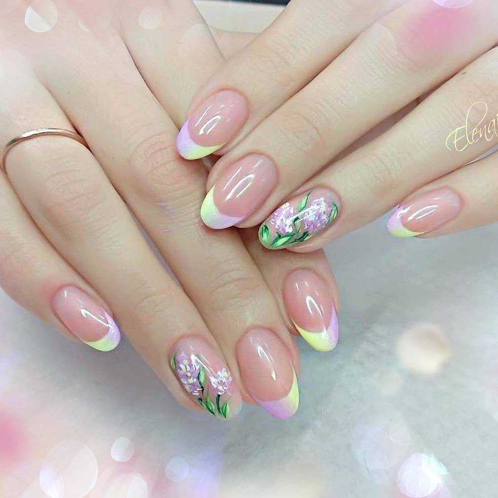 Нет ничего лучше для вашего идеального летнего маникюра, чем добавление пышных солнечных оттенков к модному французскому маникюру. В этом сезоне на высоте будут светло-розовый или приглушенный синий, персиковый и пастельно-желтый.