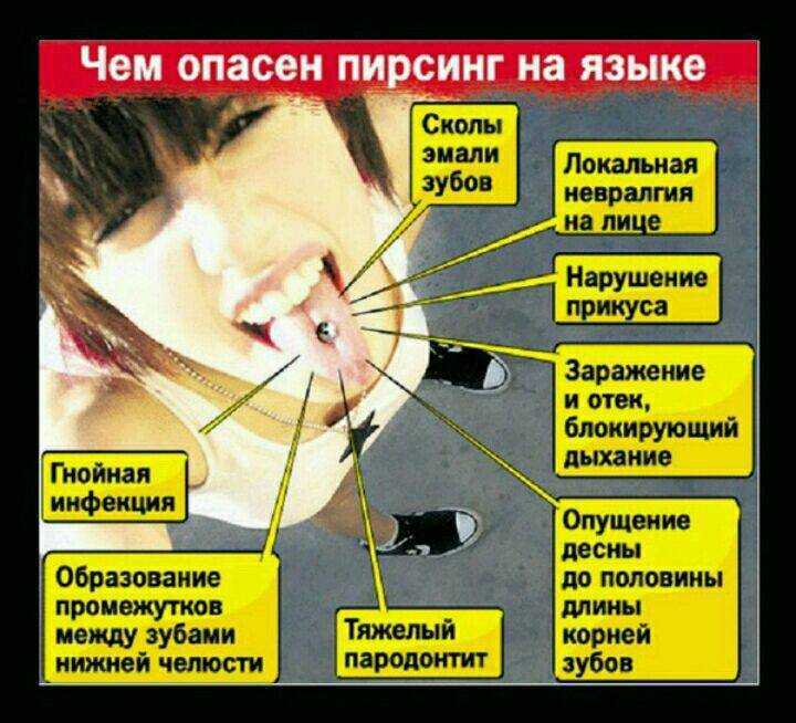 Пирсинг языка, как и любая процедура прокалывания, несет определенные риски
