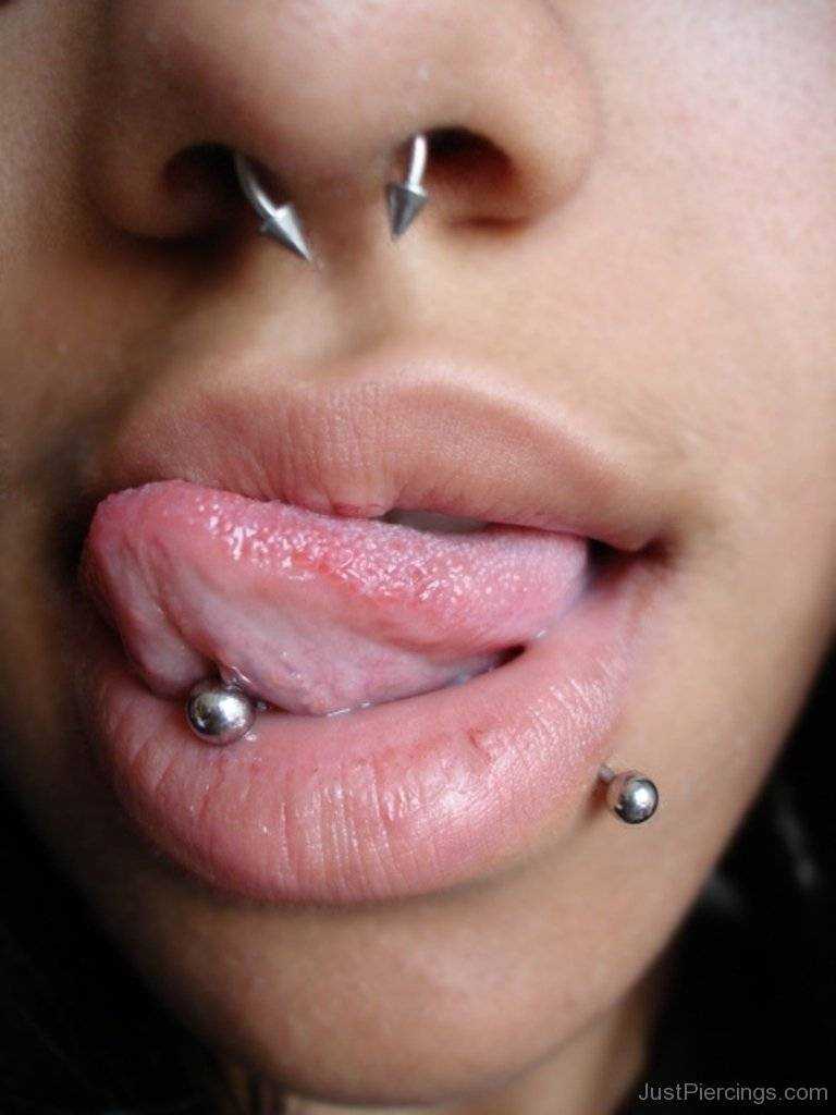 Сложная процедура, которая в будущем может привести к повреждению зубов. Специалист должен тщательно выбирать не только украшение, которое будет вставляться в прокол, но и место пирсинга.