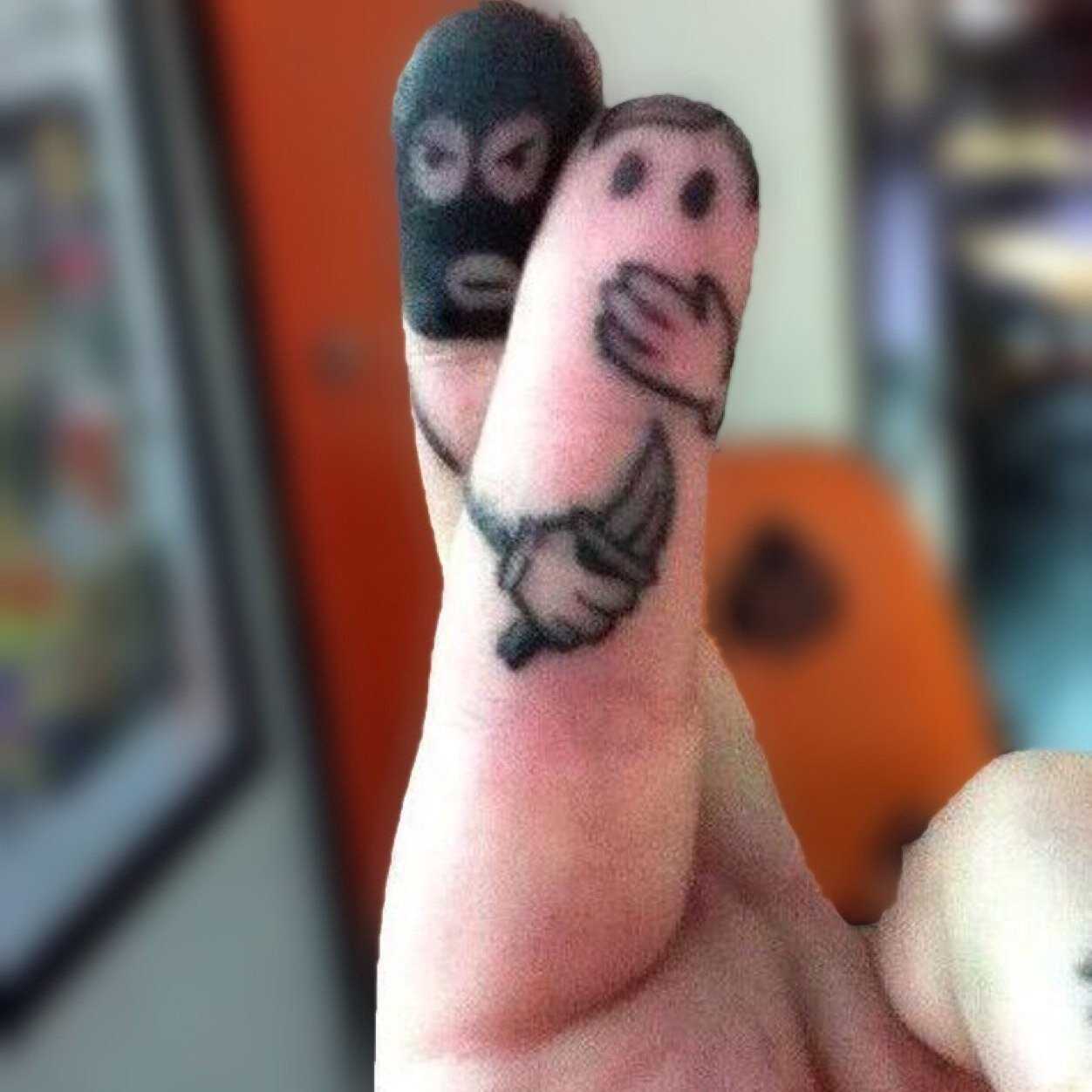 - глаза нарисованные на пальце, преподнеся которых к лицу можно вызвать смех;