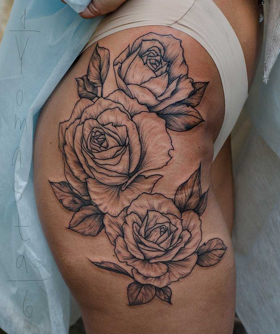 Татуировка розы и бабочки представляет трансформацию в контексте любви или романтики. Владелец изображения может сообщать о том, что он пережил расставание и разбитое сердце снова готово к новым отношениям.