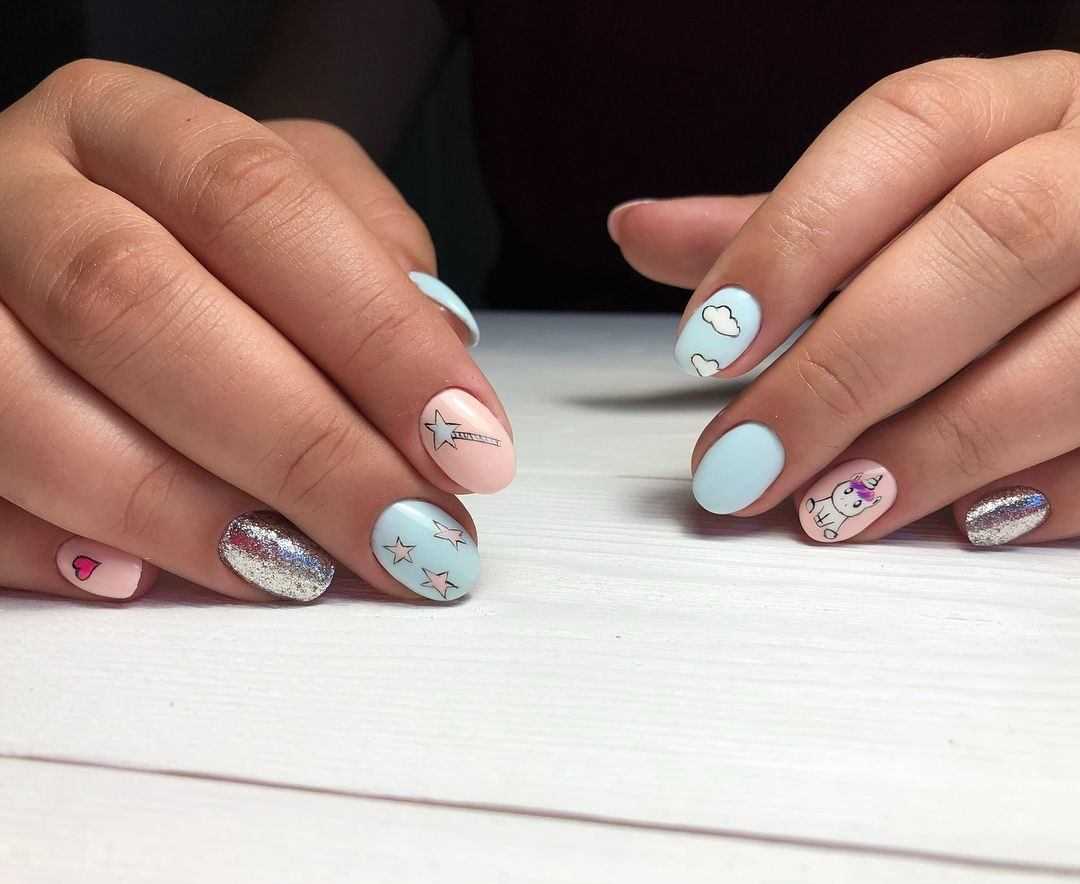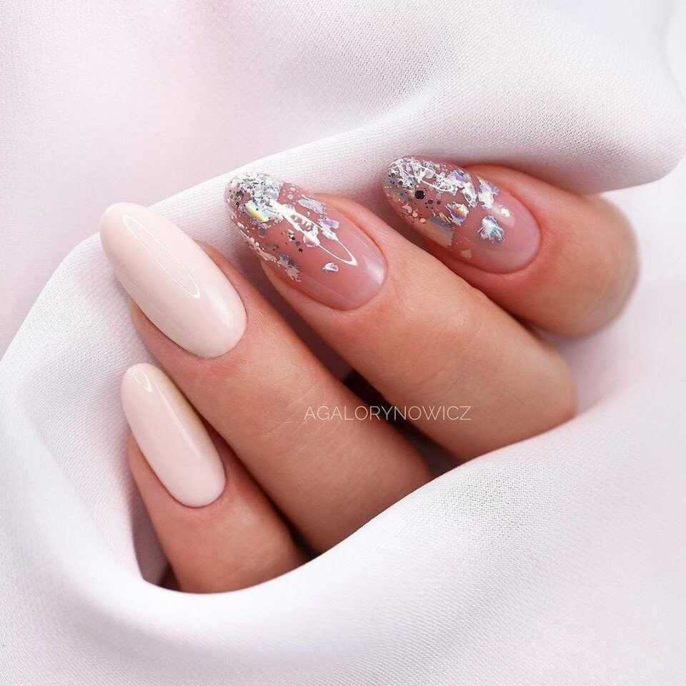 Матовые или глянцевые покрытия выглядят одинаково эффектно на ноготках разной длины и формы. Для декорирования отлично использовать любые украшения. На светлых оттенках идеально смотрится эффект мерцания с использованием блестящей пудры и глиттера.