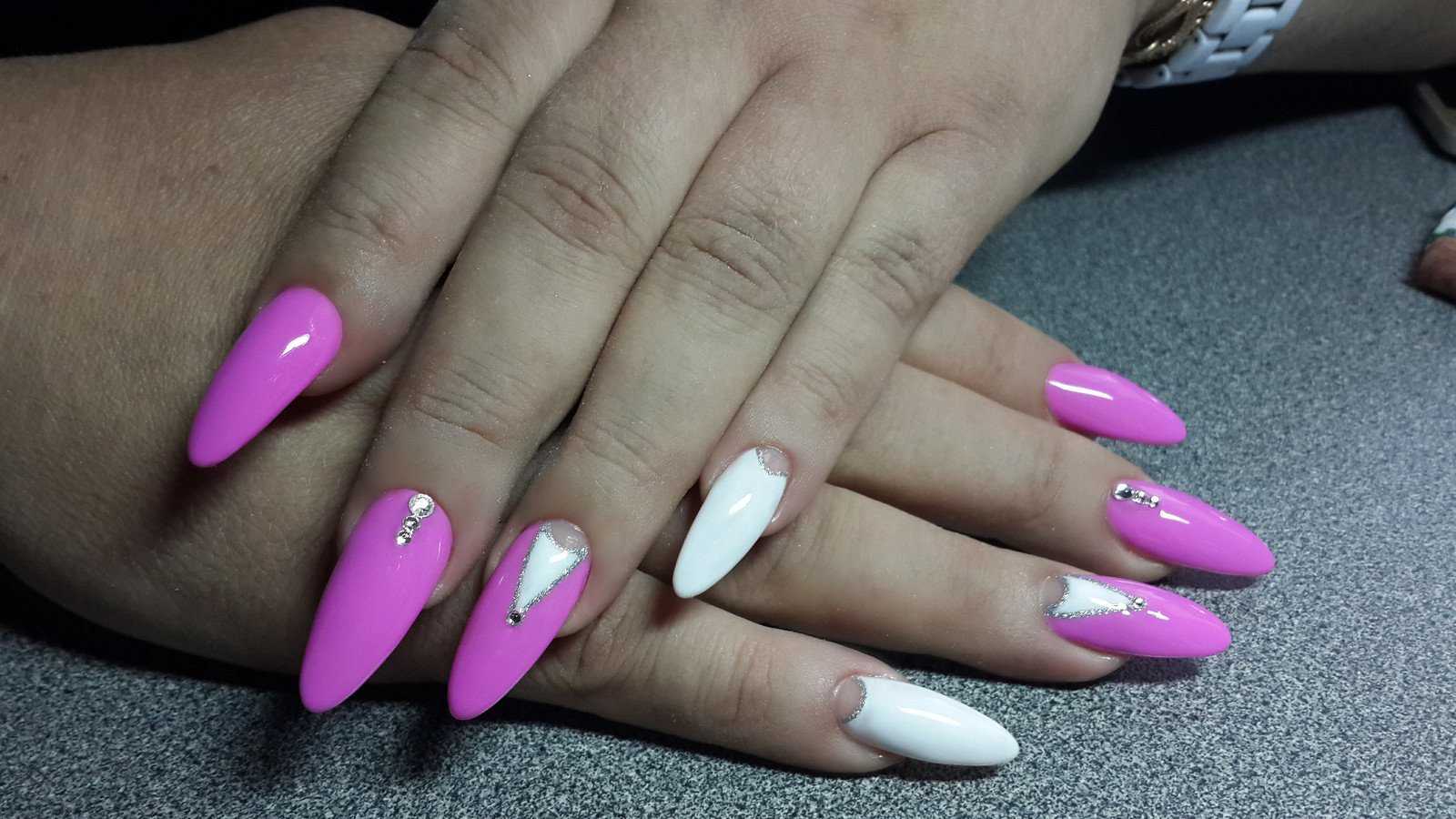 - выборочное окрашивание ногтей в неоновый розовый лак, остальные ноготки могут окрашиваться в другие цвета (белый, черный, серебристый оттенок);