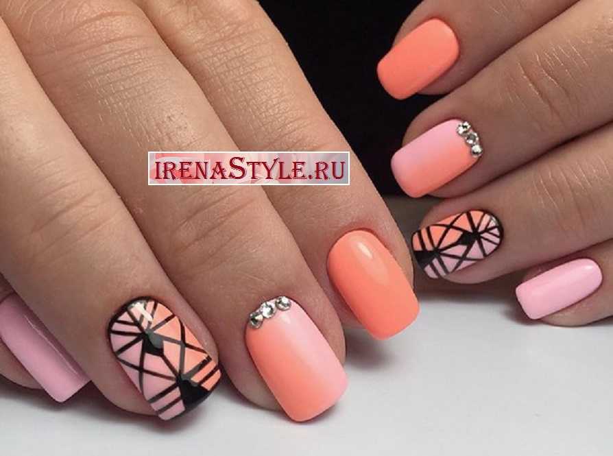 Как мы упоминали выше, розовый прекрасно сочетается с базовыми цветами, одним из которых является черный. В маникюре эта парочка выглядит очень элегантно и стильно, образуя эффект инь-янь: розовый разбавляет глубокий черный, а вместе они балансируют насыщенность и яркость друг друга.