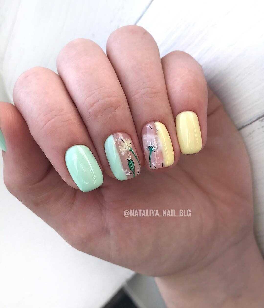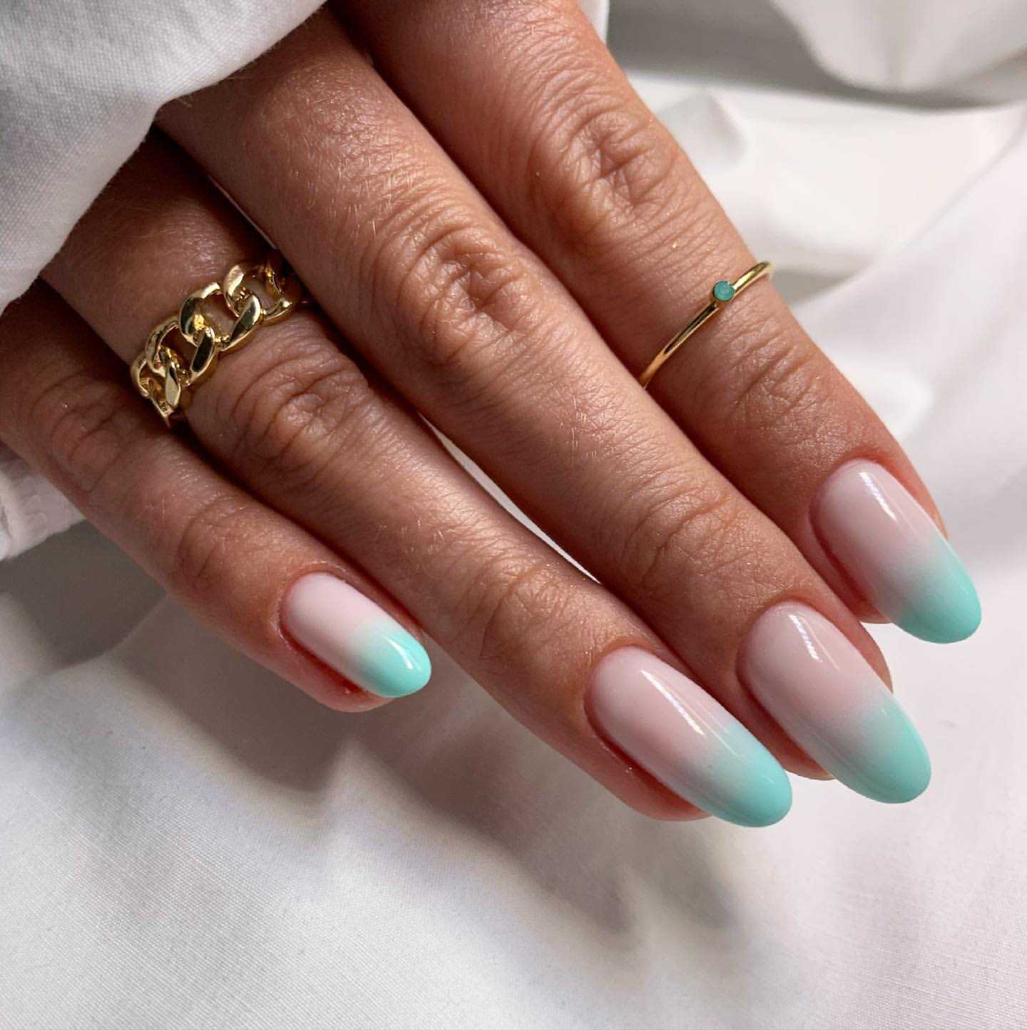 Дизайн ногтей, выполненный в технике омбре, все еще остается на лидирующих позициях. Этот нетривиальный и многогранный вариант маникюра выразительно смотрится на любой длине и с любой формой ногтей. На каждый день лучше комбинировать мятный цвет лака с базовым белым, а вот для курорта или праздничного мероприятия можно взять что-то по ярче, например, розовый, желтый или же фиолетовый оттенок. Вы можете использовать любое сочетание оттенков создавая свой индивидуальный дизайн для определенного события в своей жизни.