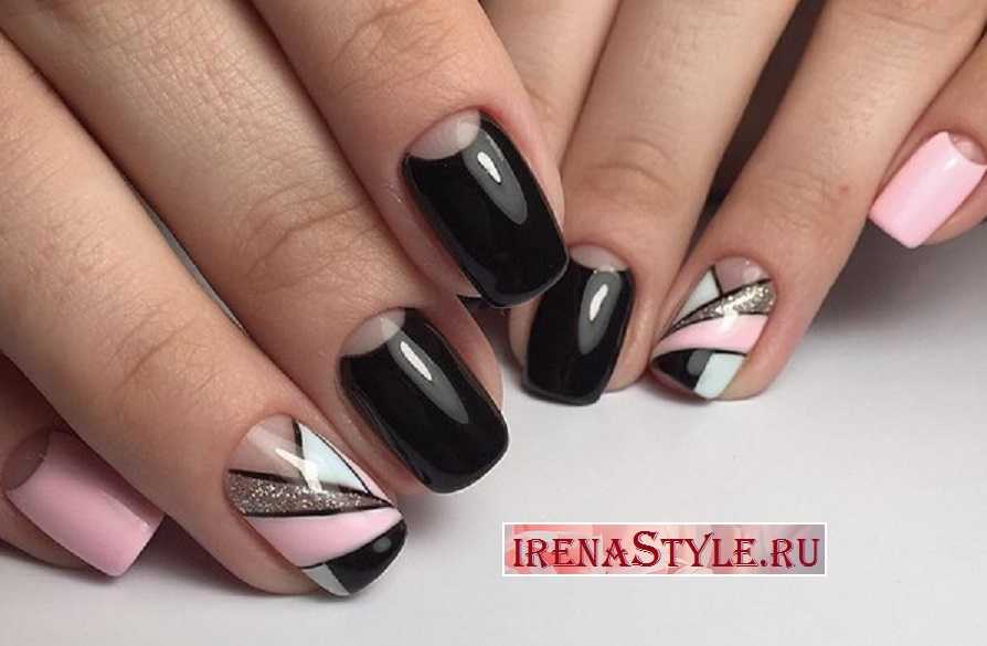 Ниже мы подобрали несколько идей маникюра в розовых тонах с вкраплением черного. Посмотри, насколько эффектно смотрится френч — мы бы не догадались так интересно скомбинировать эти два цвета. Чтобы усилить глубину черного, в некоторых дизайнах можно использовать черный песок или добавить немного серебряного глиттера.