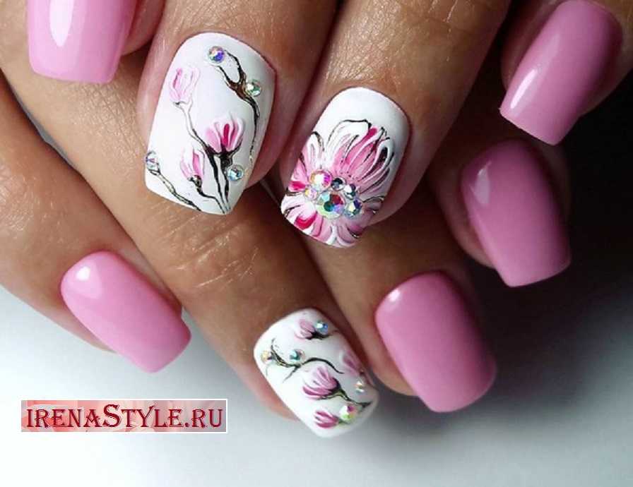 Розовые ногти сочетаются практически с любым весенне-летним образом. Если к общему дизайну добавить декор в виде бабочек или стрекозок, то можно получить легкий, задорный образ и отличный летний маникюр. Если же нарисовать красивый орнамент или узор, то можно смело отправляться на вечеринку. Добавив немного блеска в виде страз – вы получите роскошный маникюр, который подойдет для торжественного случая, например для выпускного вечера.