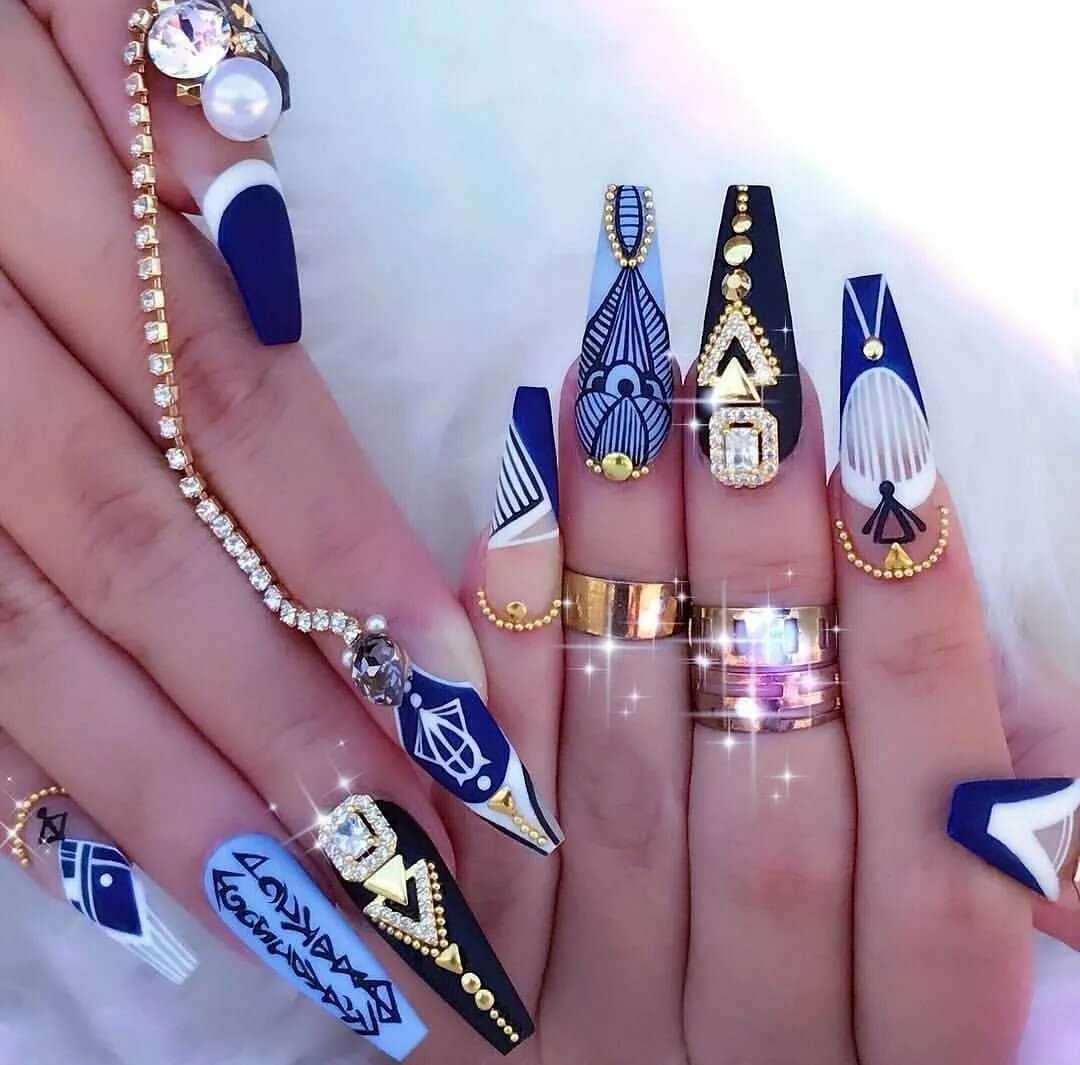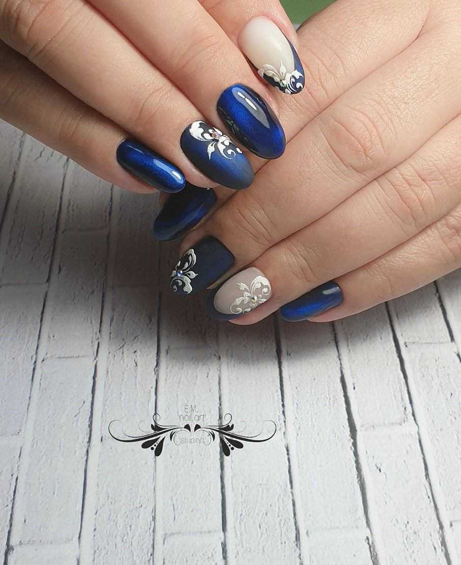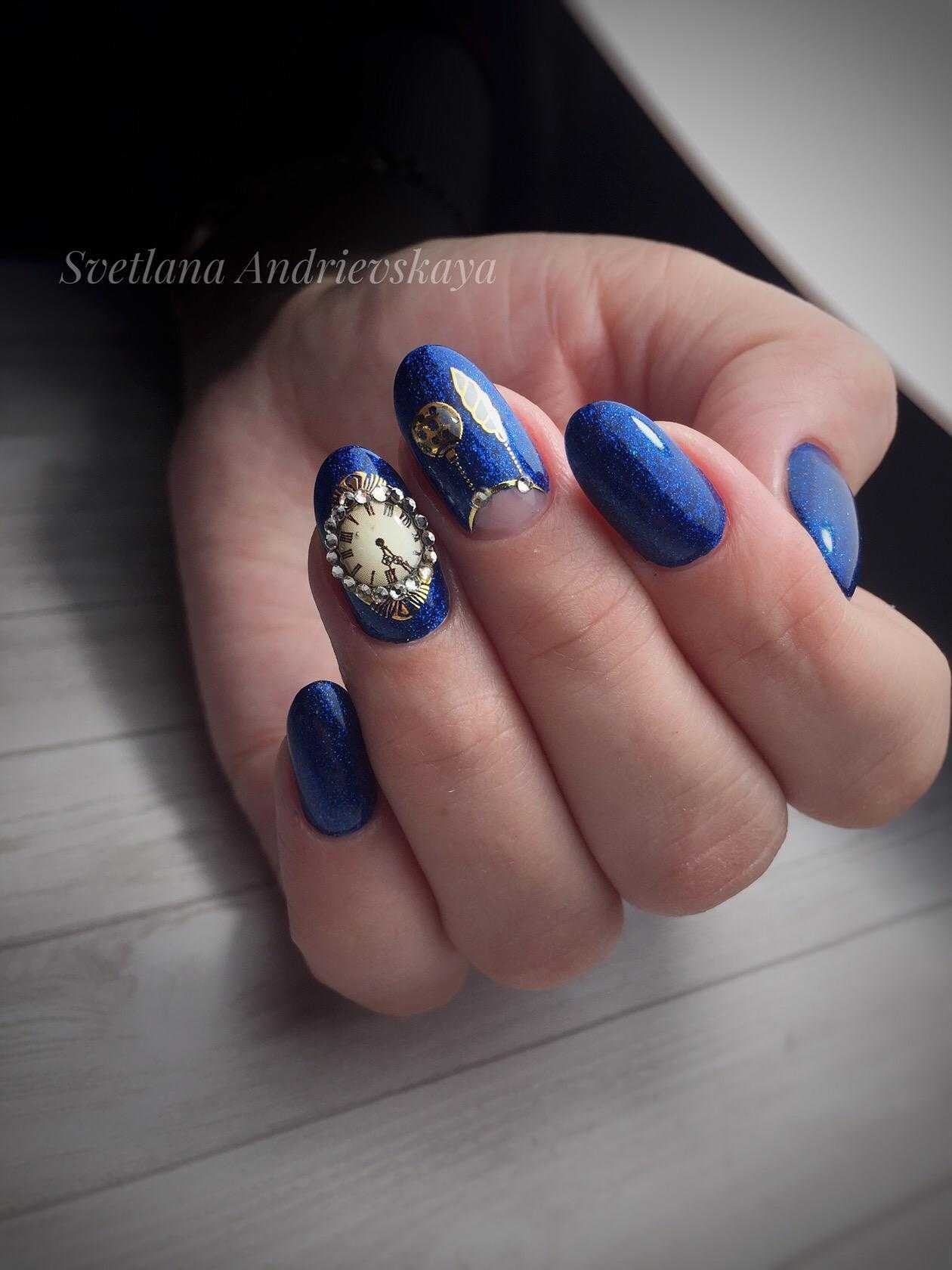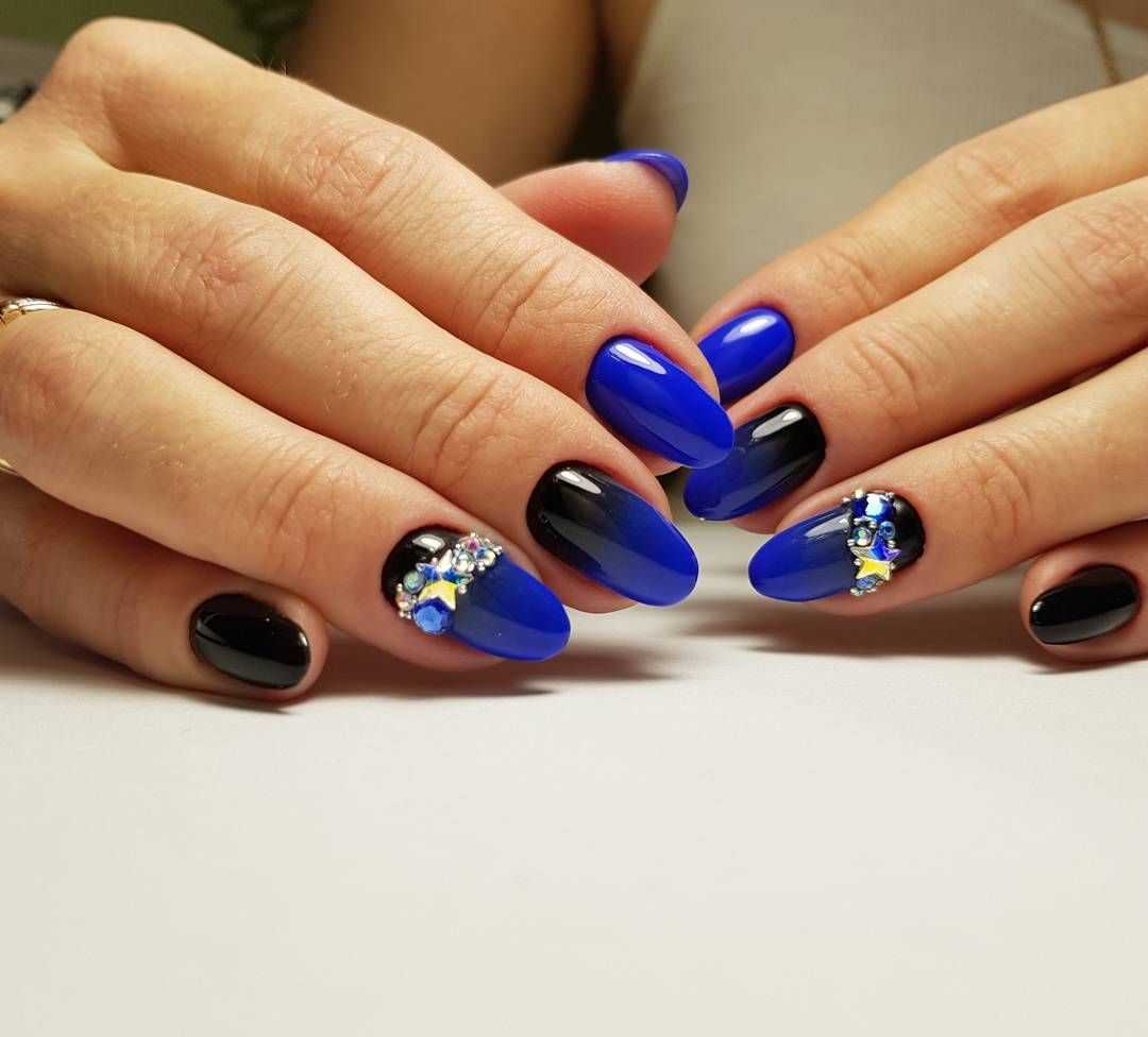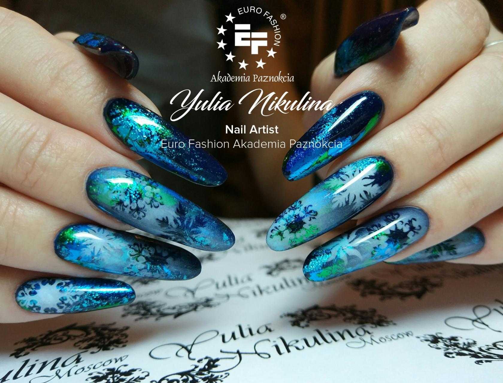 Чтобы почувствовать себя особенной женщиной, мастера маникюра могут предложить вам огромное обилие дизайнерских nаil-решений. Длинные ногти придадут вам стильный и утонченный образ. Для длинных ногтей миндалевидной формы отличным вариантом будет стильный синий френч. Френч из глиттера также смотрится необычно и ярко.