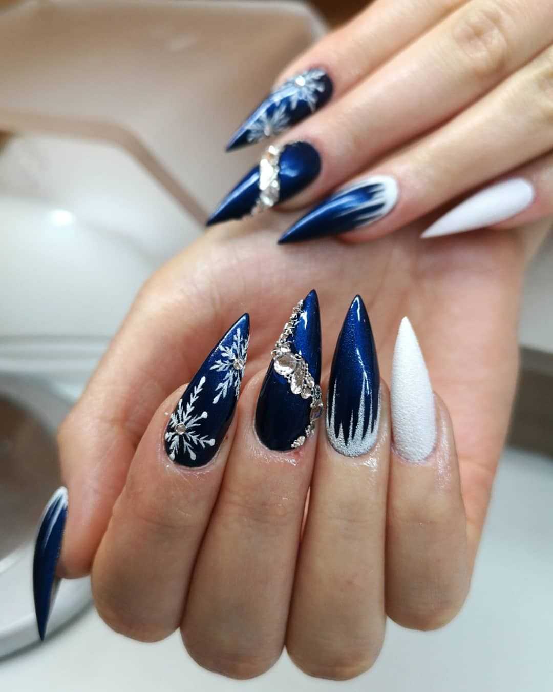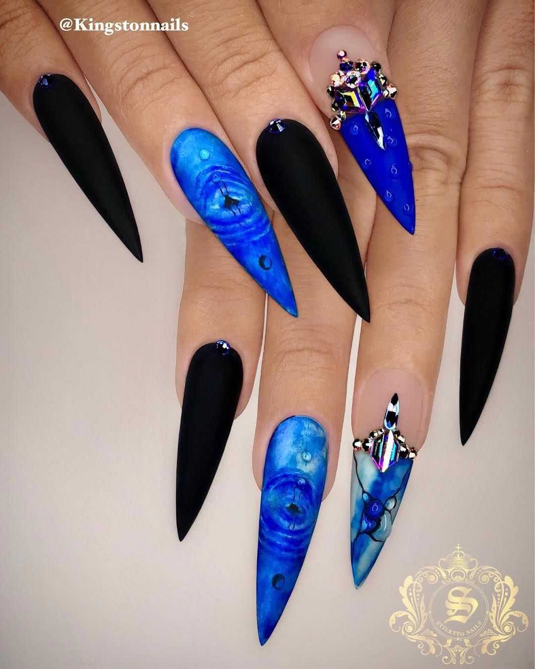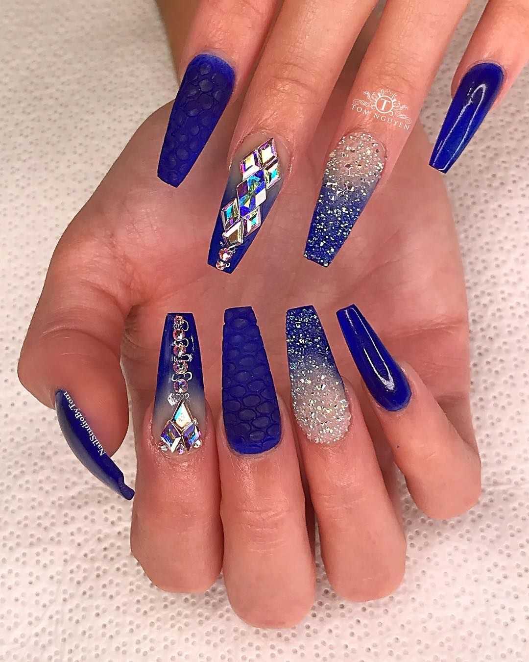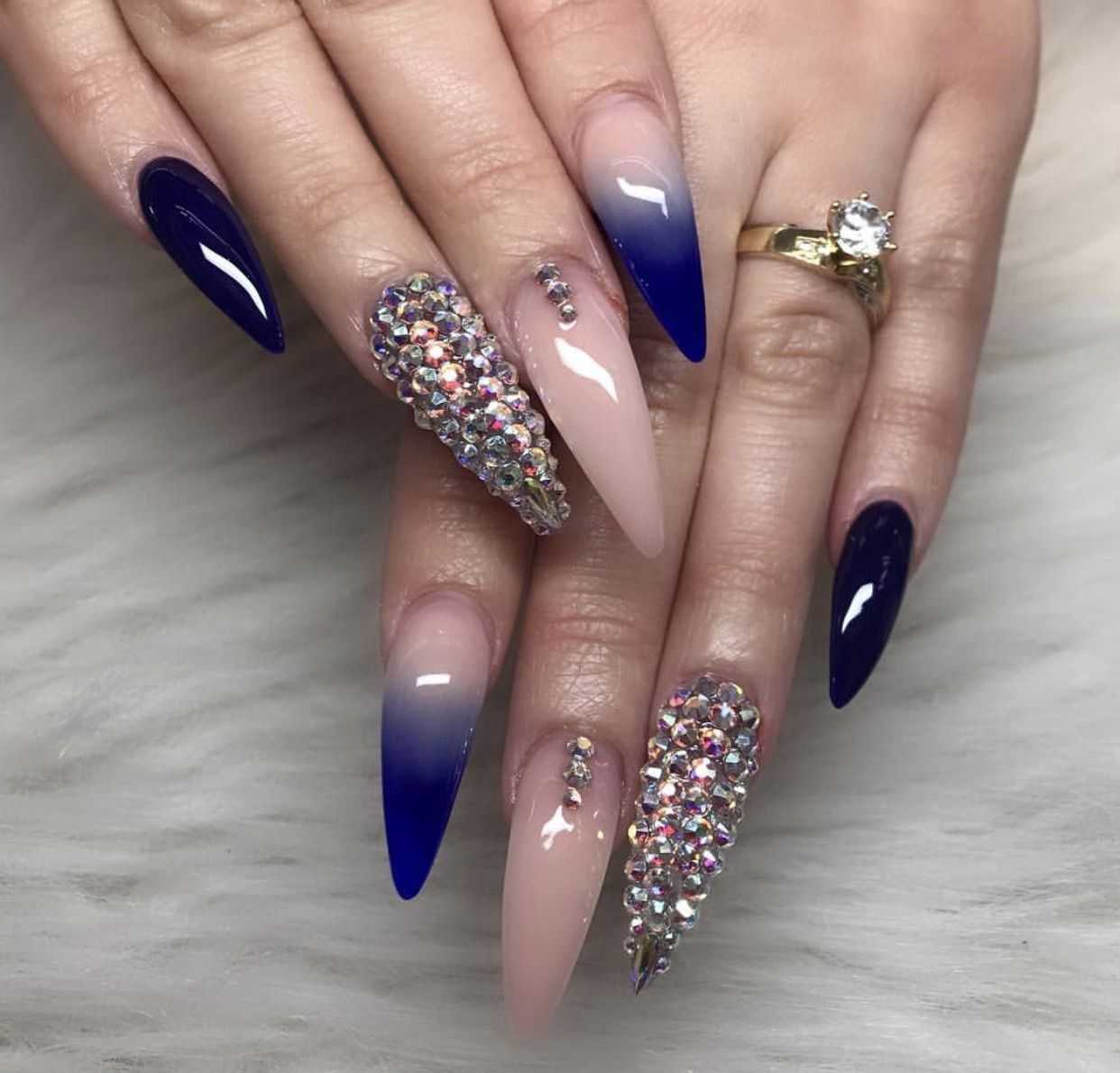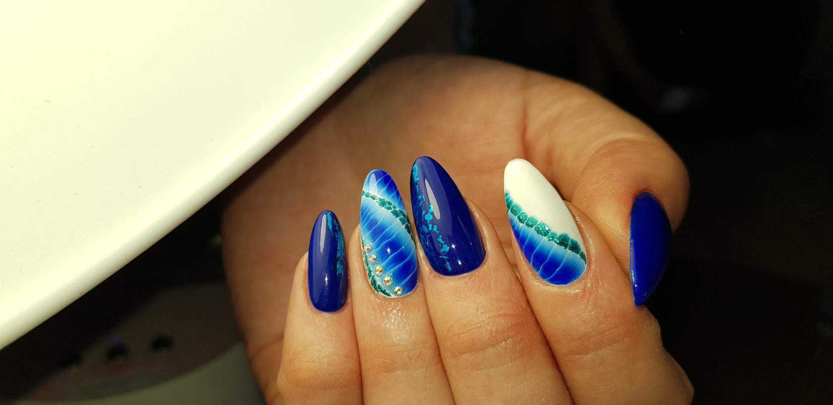 Чтобы почувствовать себя особенной женщиной, мастера маникюра могут предложить вам огромное обилие дизайнерских nаil-решений. Длинные ногти придадут вам стильный и утонченный образ. Для длинных ногтей миндалевидной формы отличным вариантом будет стильный синий френч. Френч из глиттера также смотрится необычно и ярко.