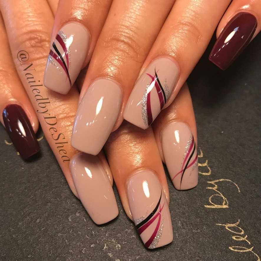 Маникюр с рисунком всегда выглядит стильно и привлекает внимание. Геометрия – удачная тематика для декора