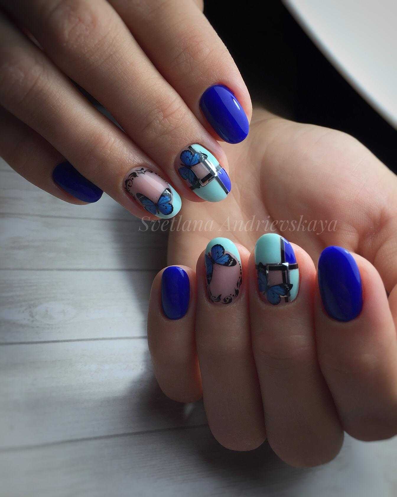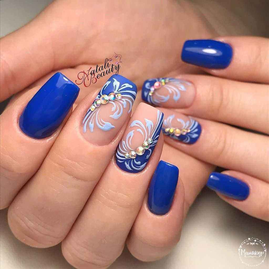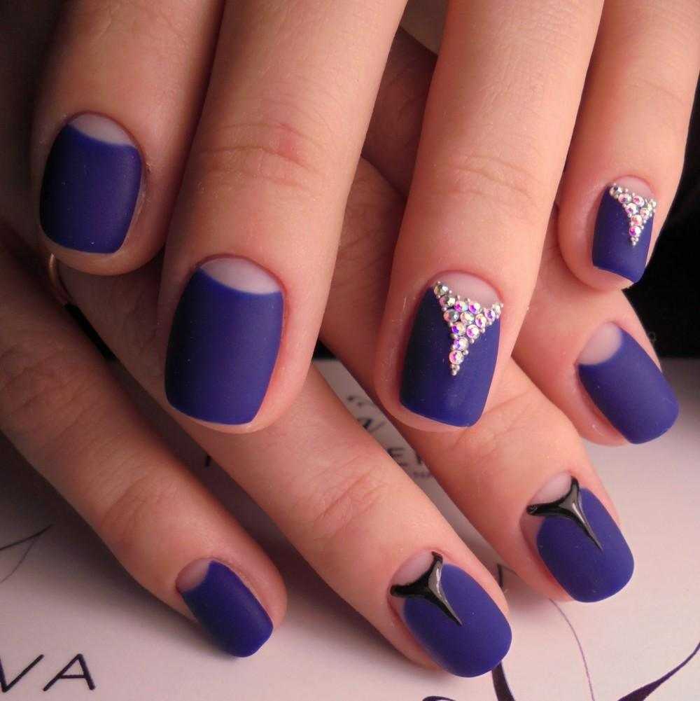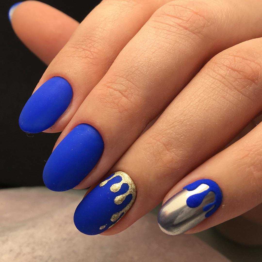 Густой и насыщенный цвет августовского чистого неба. Он красив и эффектен сам по себе. Вы можете обойтись минималистичным дизайном и сделать маникюр только с матовым покрытием или соединить все перечисленные цвета в одно модное омбре.