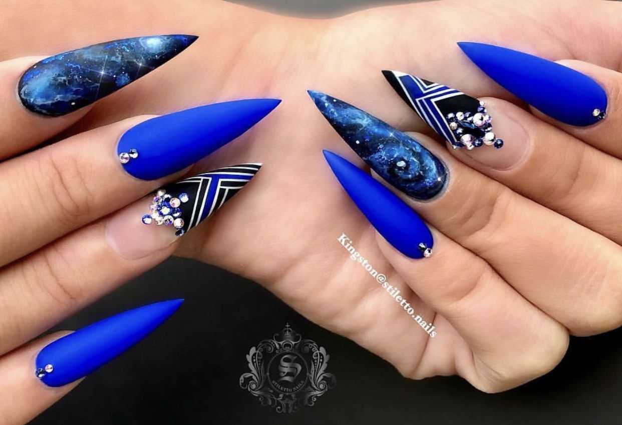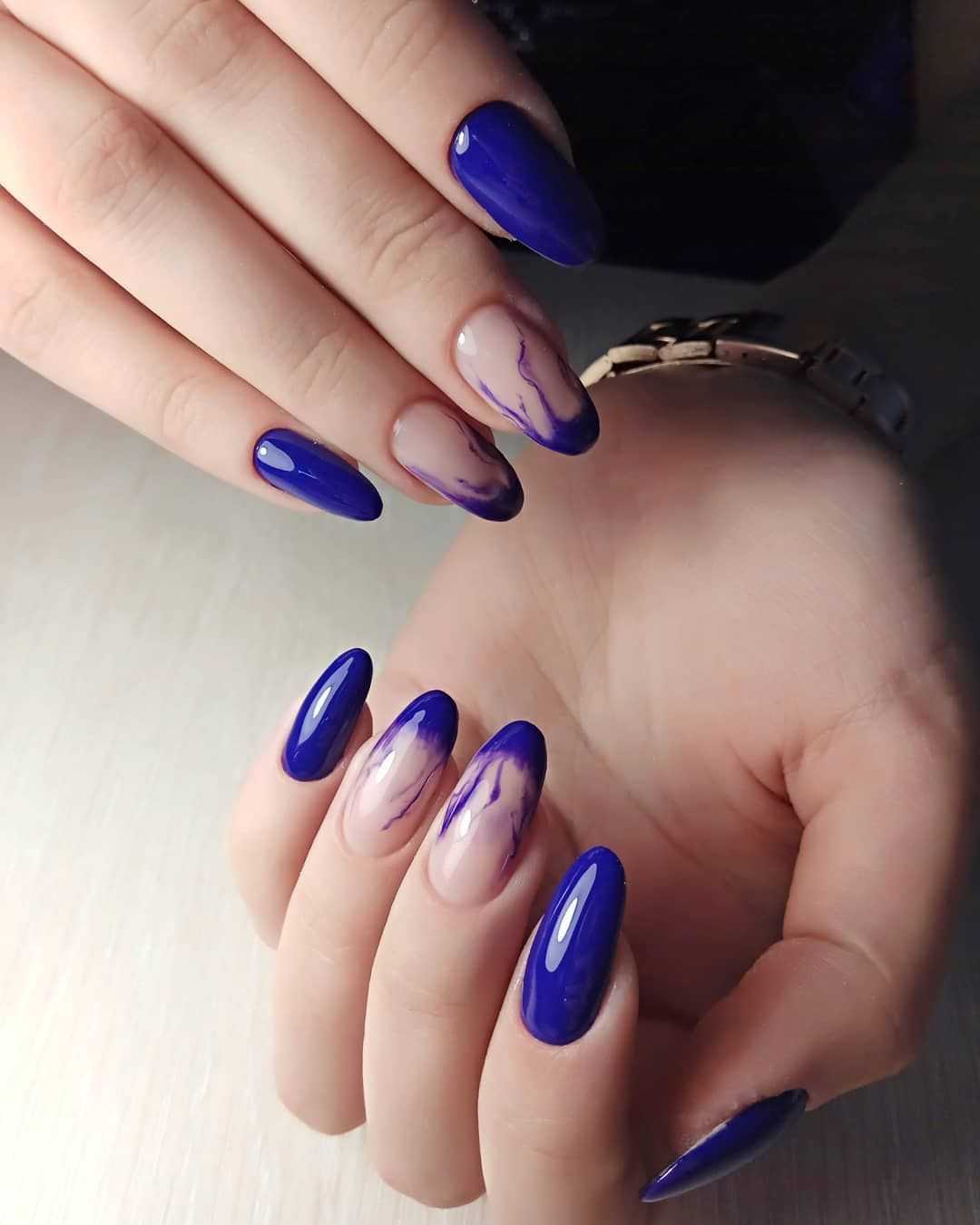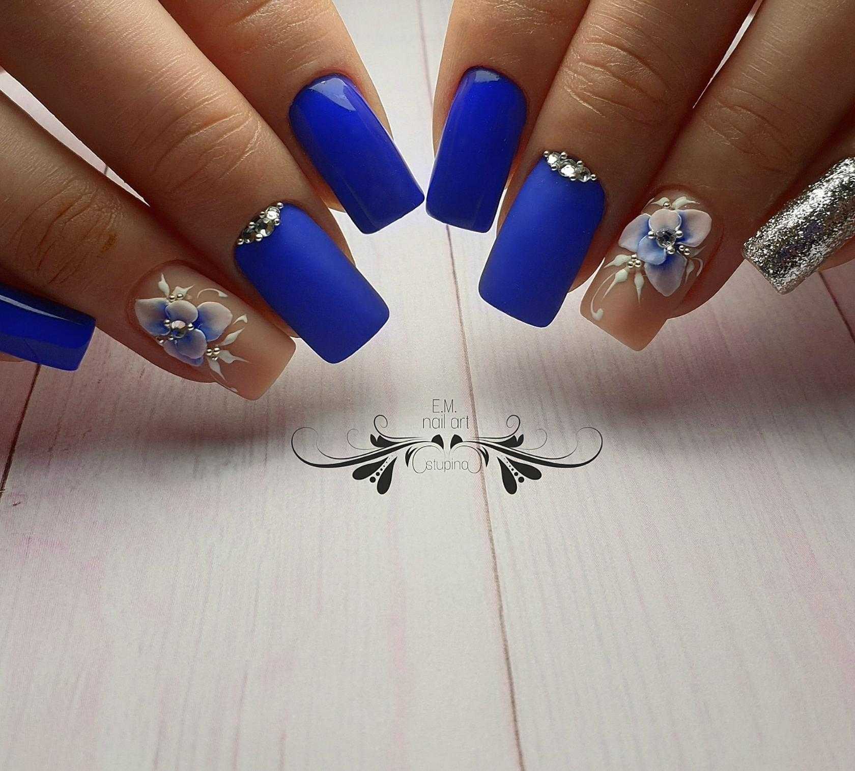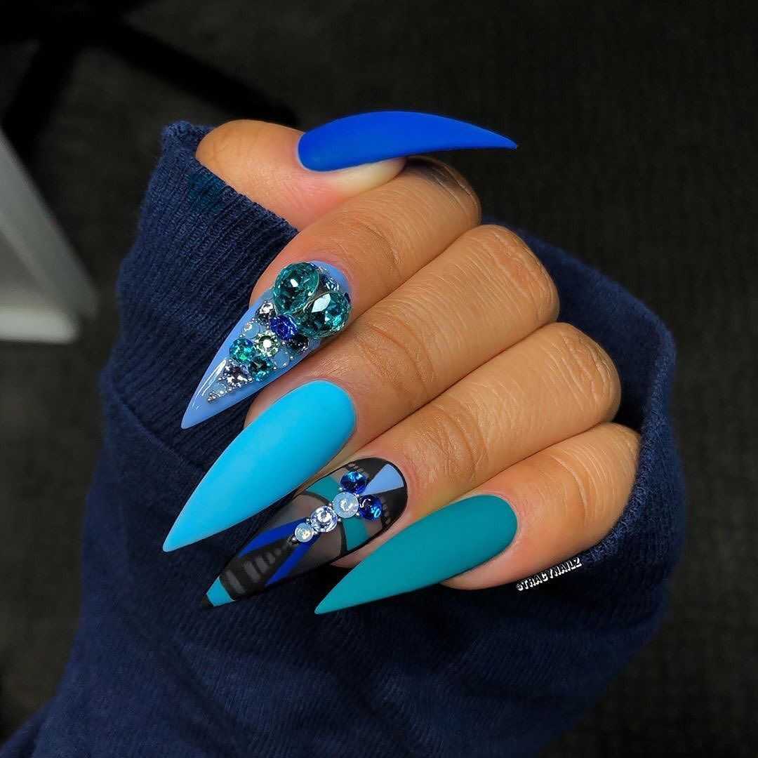 Густой и насыщенный цвет августовского чистого неба. Он красив и эффектен сам по себе. Вы можете обойтись минималистичным дизайном и сделать маникюр только с матовым покрытием или соединить все перечисленные цвета в одно модное омбре.