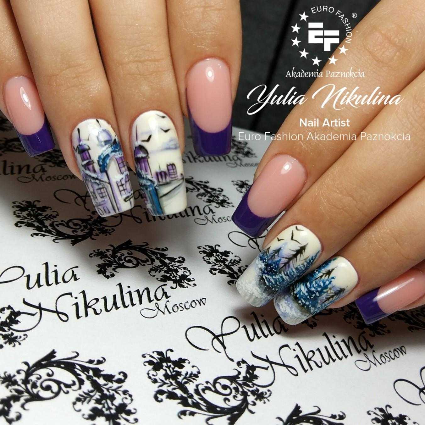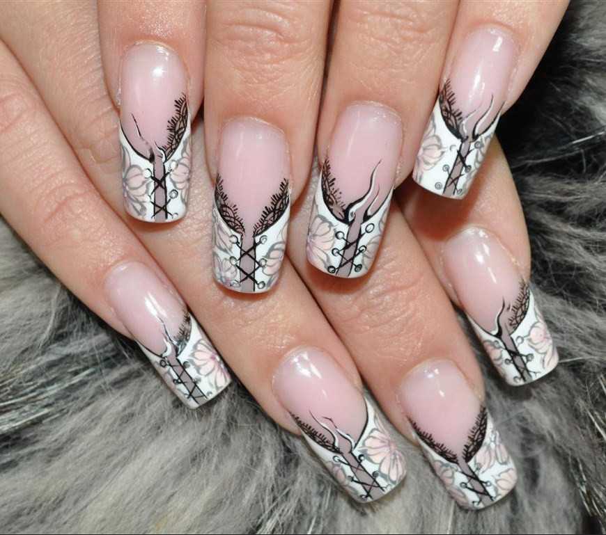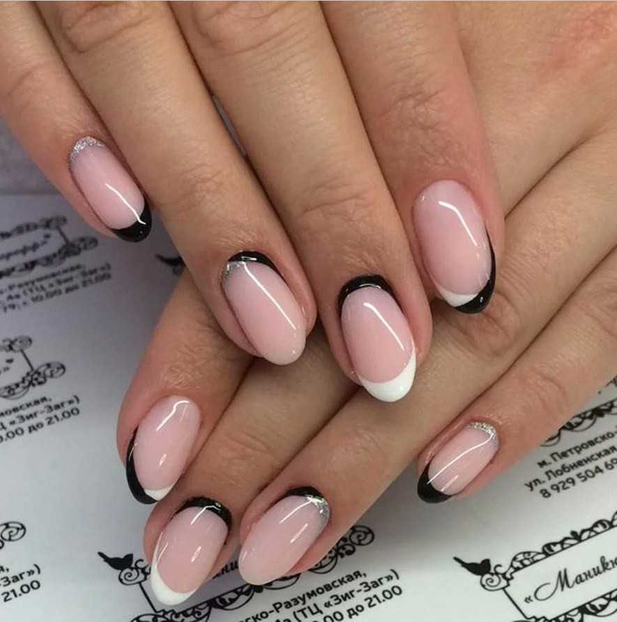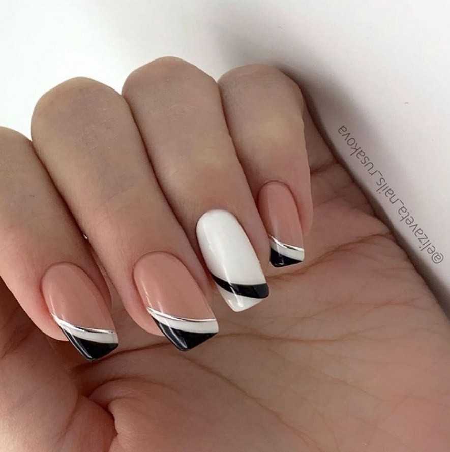 Френч маникюр с дизайном на разной форме ногтей в 2022 году