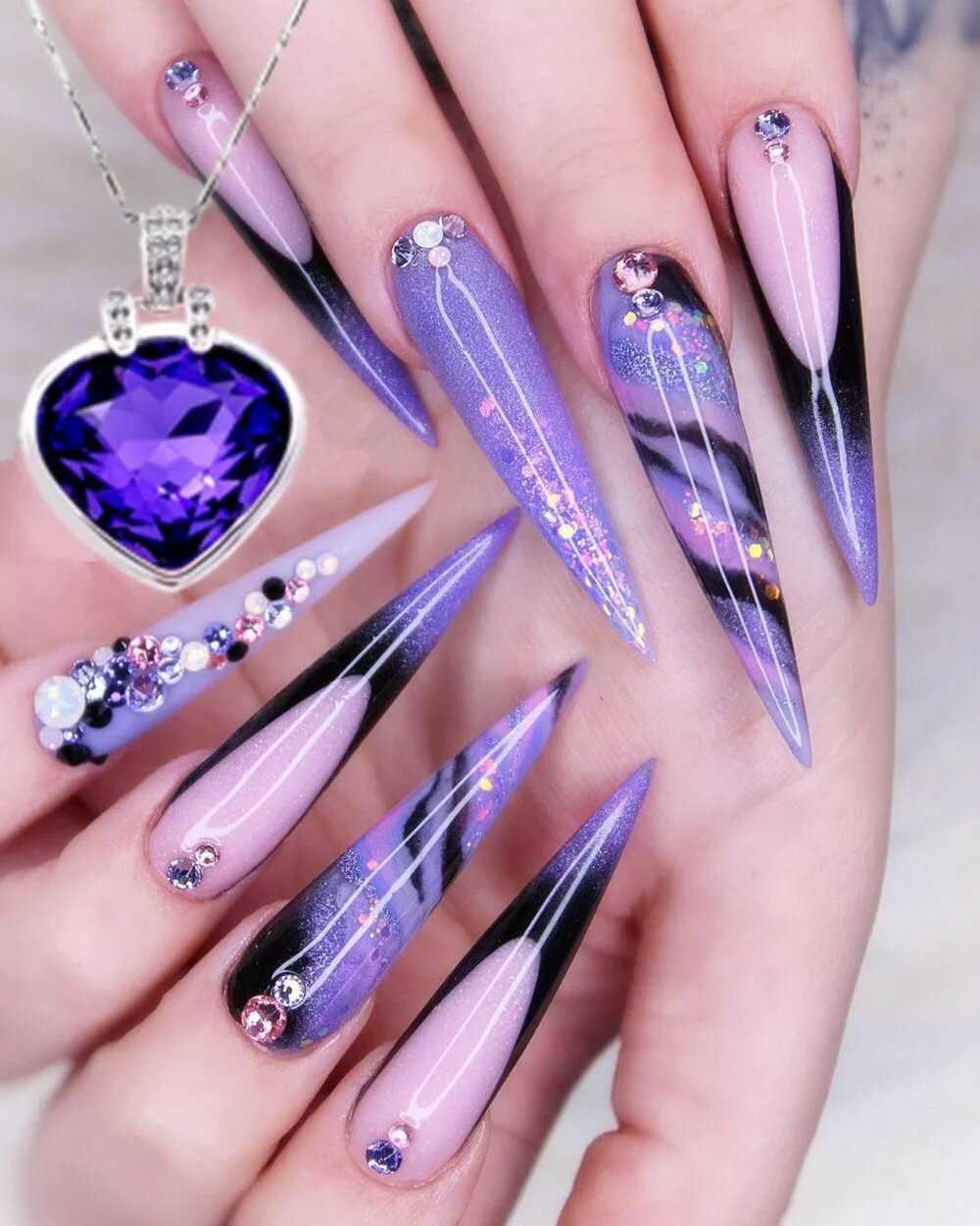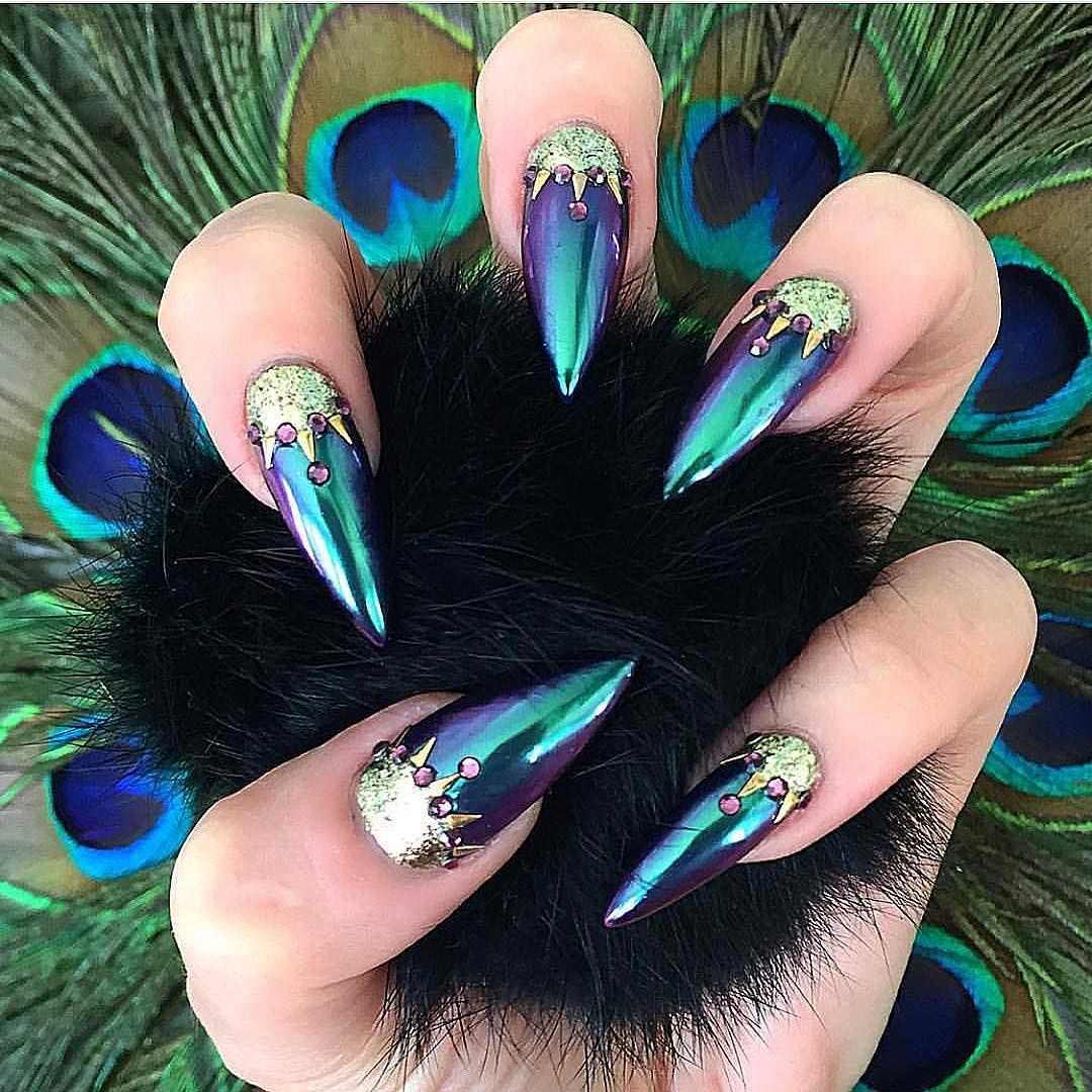 Острая форма ногтей, как и миндалевидная, удлиняет кисть руки, ногтевую пластину. Она уязвима с точки зрения носкости, так как заостренный кончик может сломаться. Чаще всего подобную форму ногтевой пластины выбирают гламурные «женщины- кошечки», страстные натуры, «девушки-вамп», артистические натуры.