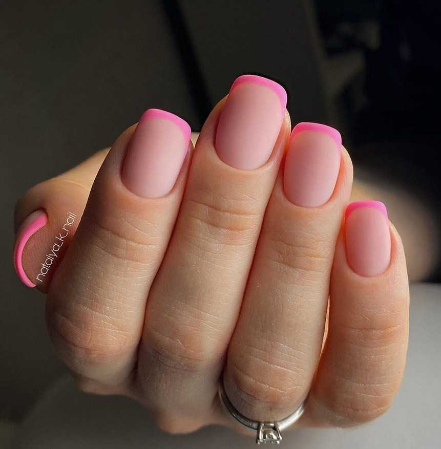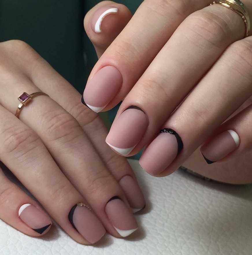 Френч заиграет иначе, если в конце его покрыть не глянцевым, а матовым или велюровым топом. Так дизайн получается спокойным, уютным, но от того не менее стильным.