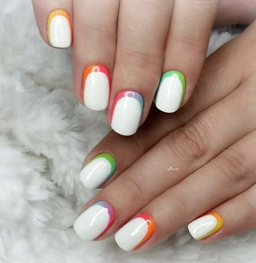Фото яркого маникюра цветного маникюра френч можно увидеть в самых трендовых журналах, при этом он практически не имеет ограничений по форме и длине ногтей.