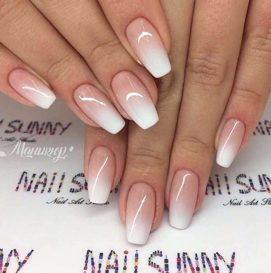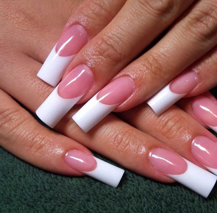 Красивый белый френч на длинные круглые и квадратные ногти