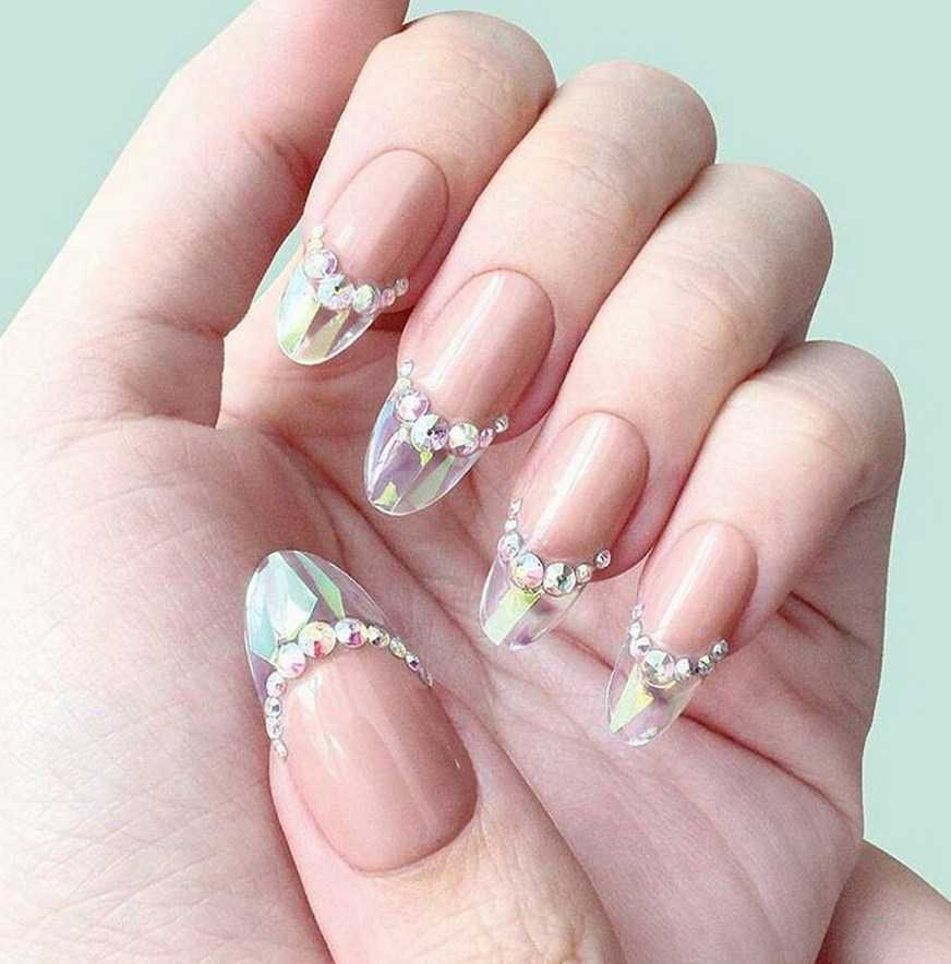 Страза воплощает собой бриллиант, который способен искриться при свете и, добавляя роскоши хозяйке маникюра, привлекать внимание к рукам. Руки, украшенные таким маникюром, непременно будут оставаться в центре внимания, будут повышать статус женщины, дарить ей эстетическое удовольствие и радость. Руки, украшенные таким маникюром, непременно будут оставаться в центре внимания, будут повышать статус женщины, дарить ей эстетическое удовольствие и радость