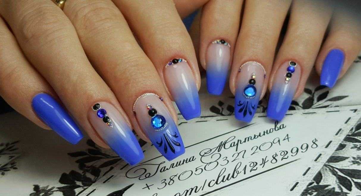 Голубой цвет — нежный и воздушный для легких и утонченных модниц. Голубой дизайн ногтей по своей концептуальности может крайне разнообразным, с гелем, лаком, блестками, различными украшениями и т. д.