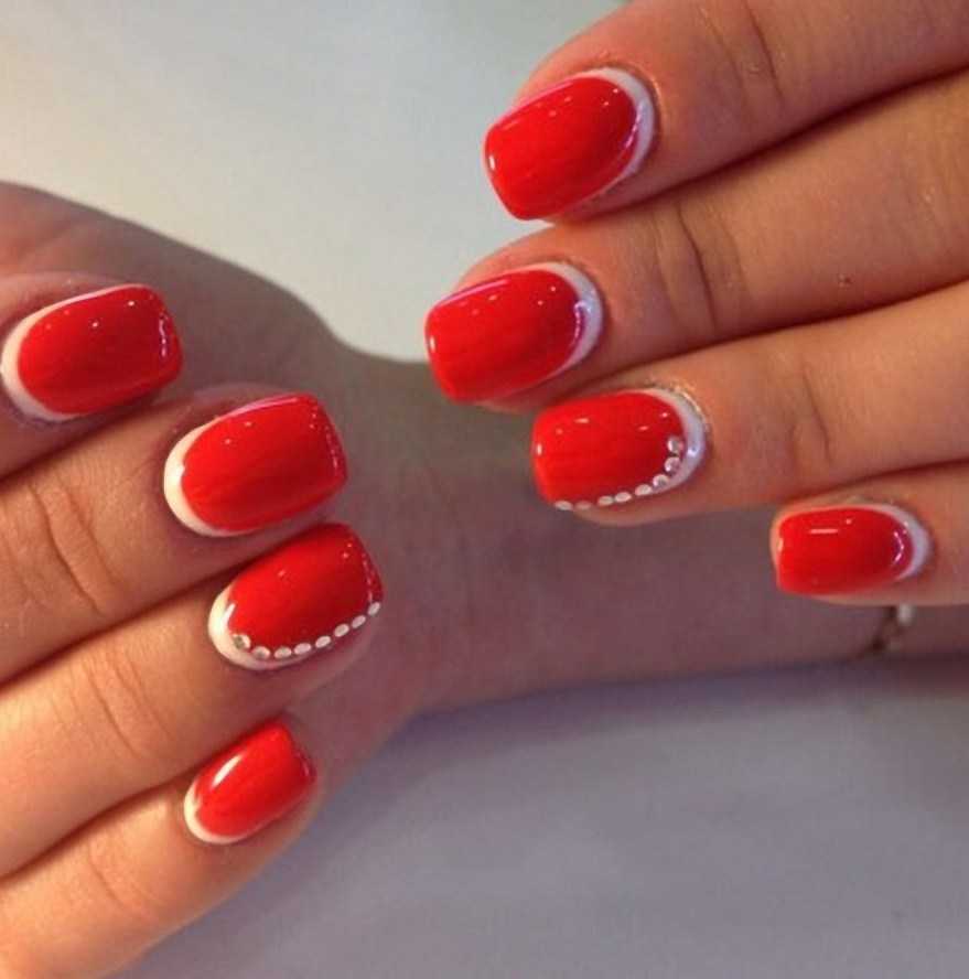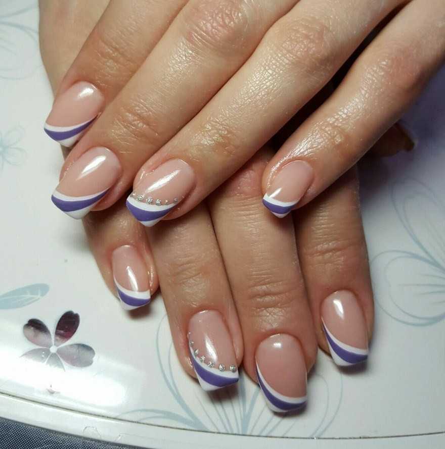 необычный французский маникюр со стразами на короткие ногти