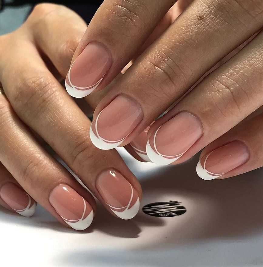 Важно: Для классического французского дизайна все линии делают плавными, округлыми, стараясь сгладить их даже при наличии квадратной формы ноготков.