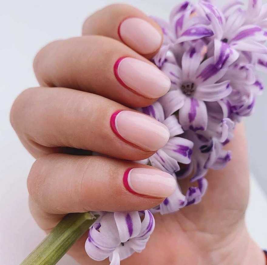 Такой дизайн будет трендом будущего сезона. Он относится к самым лаконичным и минималистичным вариантам оформления ноготков и включает тонкие линии улыбки (от 1 мм).