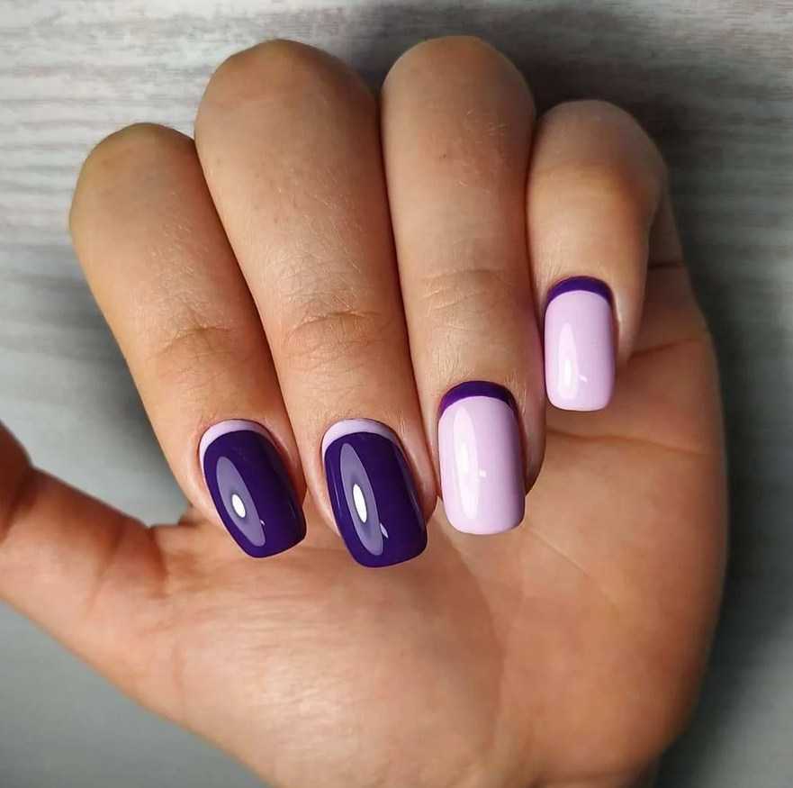 Техника френч ложится на ногтевую пластину квадратной формы. Желательно, чтобы ноготь имел прямоугольную вытянутую форму. Если пластина слегка сужена у кутикулы, визуально выровнять ее поможет лунный френч. Для оформления ногтей квадратной формы подходит геометрические рисунки, блестящий френч, контрастное решение.