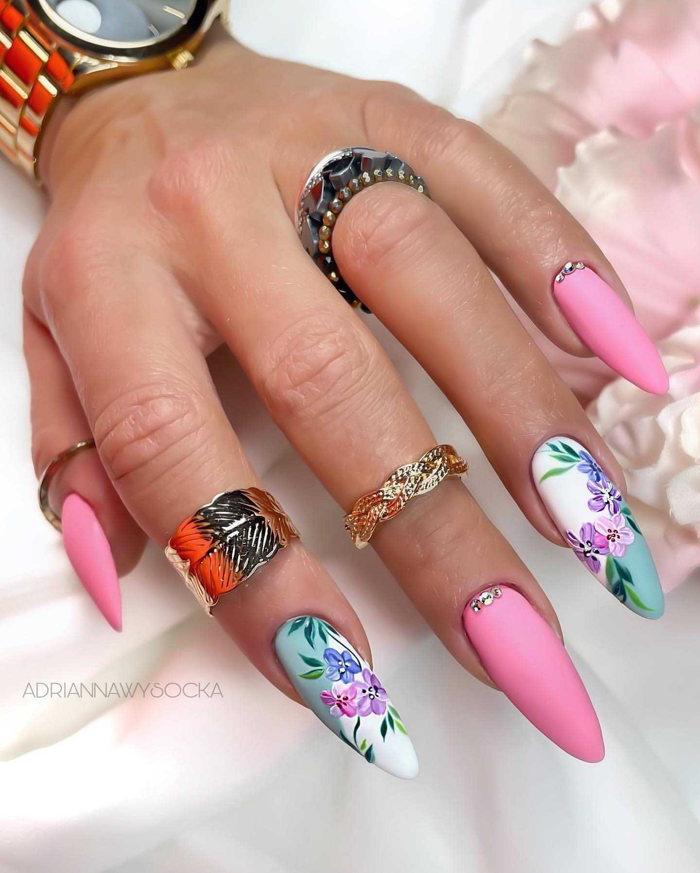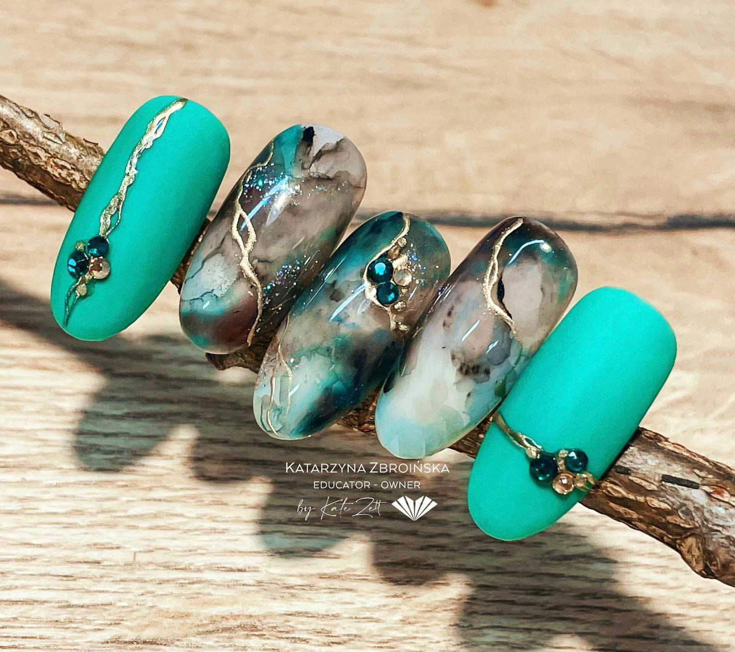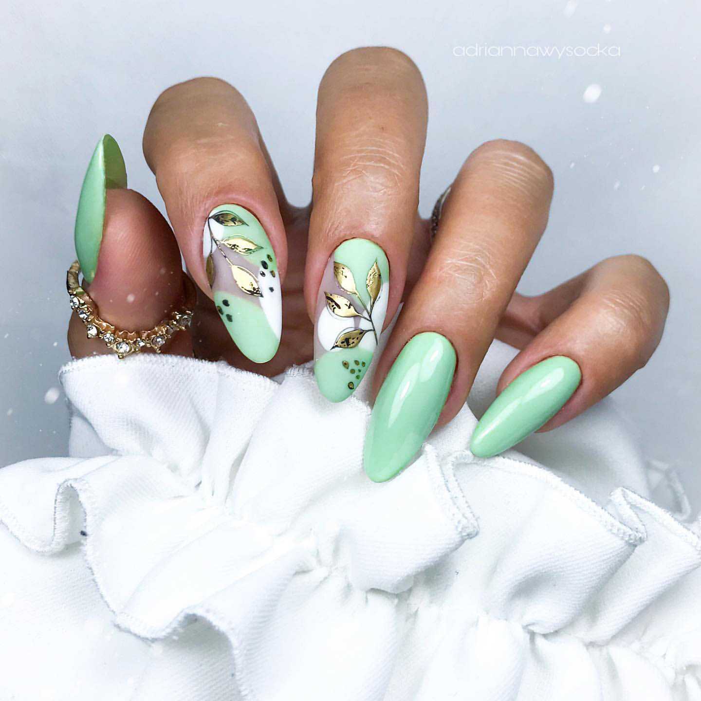 Мятные ногти с любым стилистическим рисунком обратят на себя внимание!