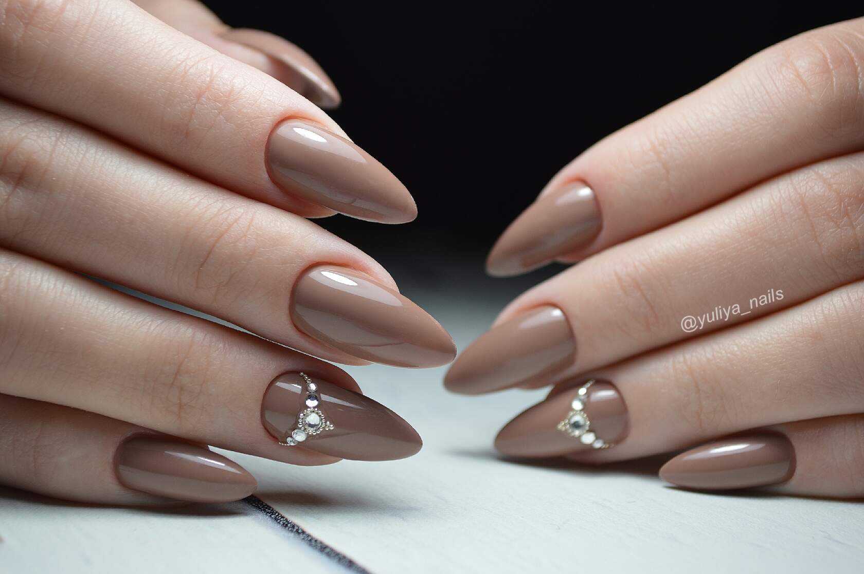 Однотонное покрытие самодостаточно. Но также предоставляет благодатную почву для разных экспериментов с рисунками, картинками, стразами. Бежевый маникюр 2021-2022 года не ограничивается грамотным выбором тона и фирмы-производителя.