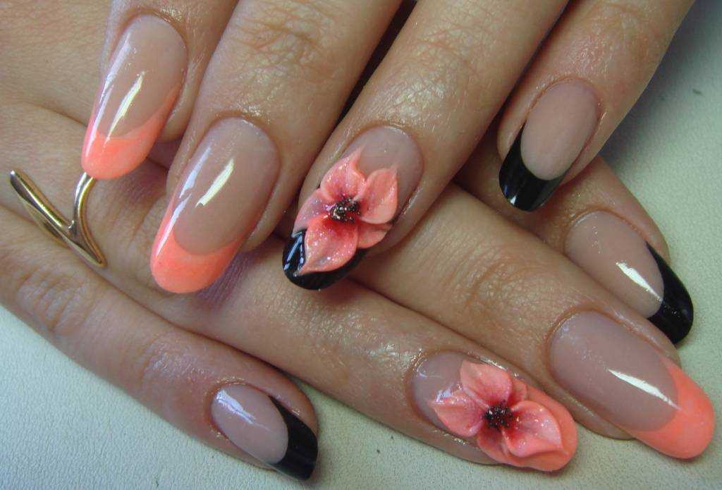 Иногда полоски используют для контрастного эффекта на фоне белого или другого цвета лака. Один из самых необычных вариантов френч маникюра – цветочные узоры. Они могут быть выполнены в разных цветовых гаммах. Например, перламутровые цветы и пастельные цветочки будут идеально смотреться на светлой основе. Также можно использовать необычные цветы, которые будут придавать ногтям интересный и необычный вид.