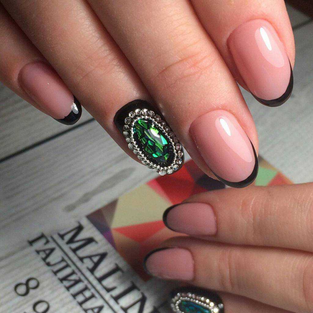 В тренде как акцентирование дуги черным лаком, так и нанесение его на всю ногтевую пластину с выделением дуги другим цветом. Также дизайнеры разработали массу вариаций по сочетанию в одном маникюре ногтей с черным «френчем» и полностью окрашенных в этот цвет.