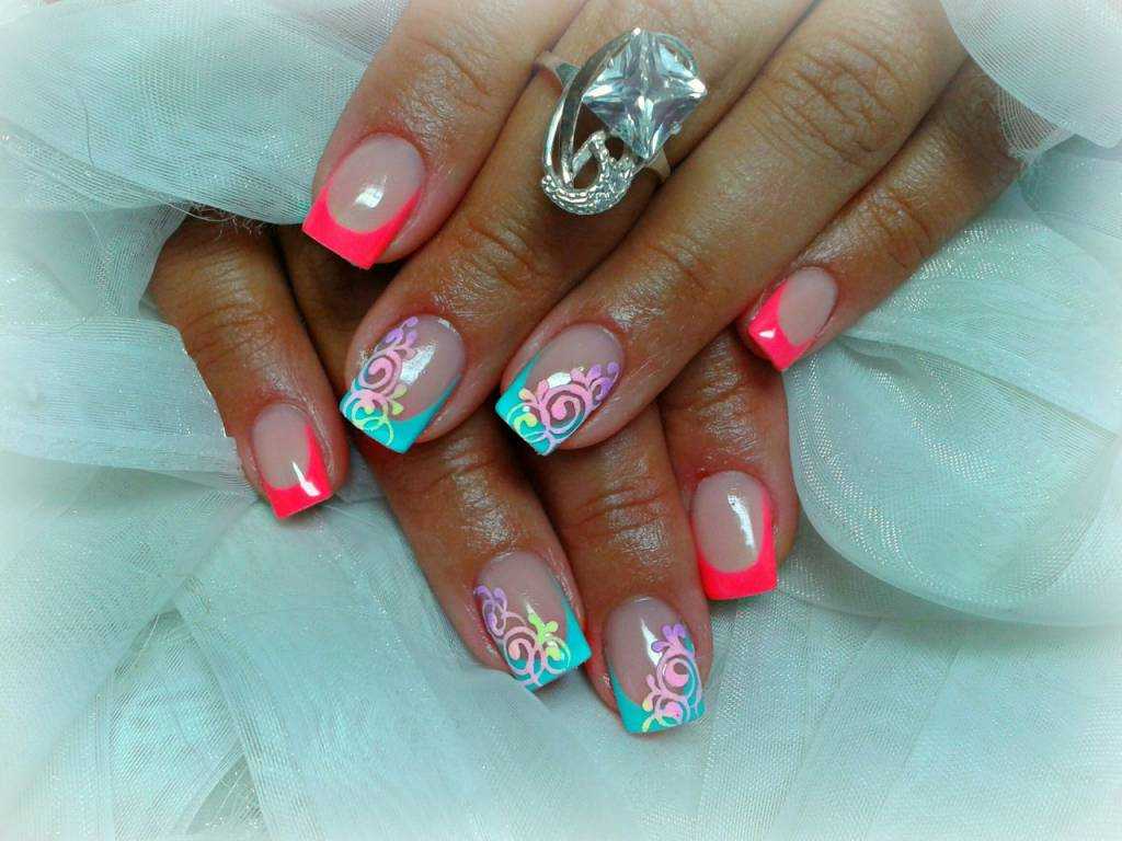 При выборе дизайна французского маникюра в ярком цвете, можете смело использовать любой понравившийся дизайн. Самое главное, чтоб цвета были тщательно подобраны и гармонировали друг с другом. Для выполнения линий френча можете выбрать неоновые оттенки, зеркальную втирку и даже яркий глиттер. Самым модным ярким дизайном станет эффект радуги на длинных ноготках. Также популярным и актуальным дизайном принято считать французский маникюр, который выполнен в ярких тонах. Такой дизайн способен преобразить и украсить женские ручки, придавая им стиль и грациозность. Яркий френч-маникюр прекрасно подойдет как для коротких, так и длинных ноготков. Он станет самым лучшим дополнением для праздничных и повседневных выходов.