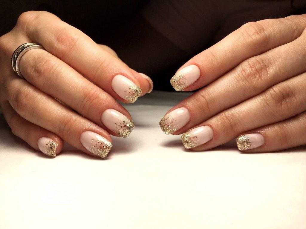 Хотите сделать быстрый праздничный маникюр? Выбирайте френч, только оформите улыбку золотом или серебром. База может быть любой — нейтральный, нюдовой или яркой цветной.