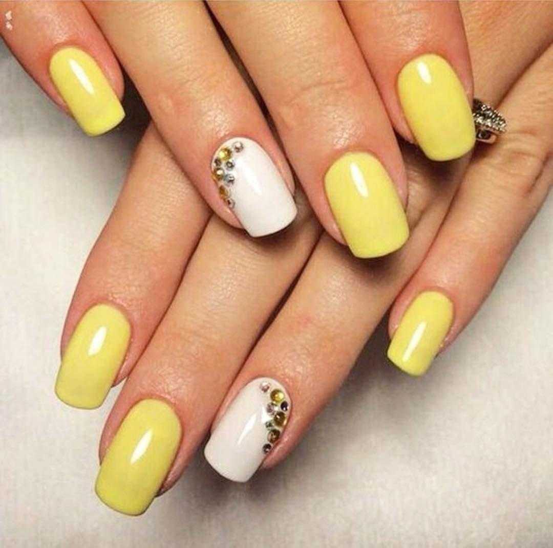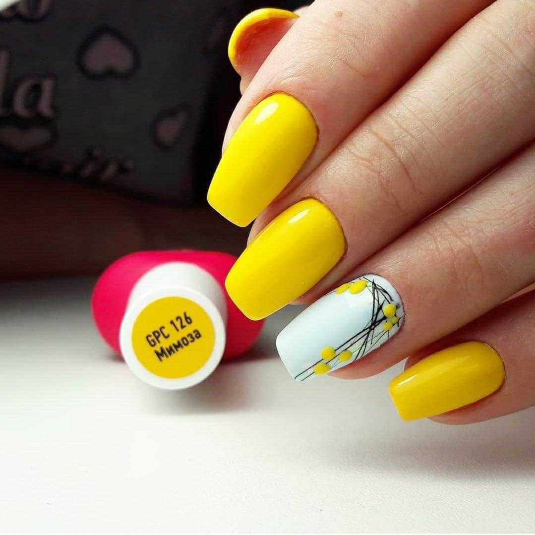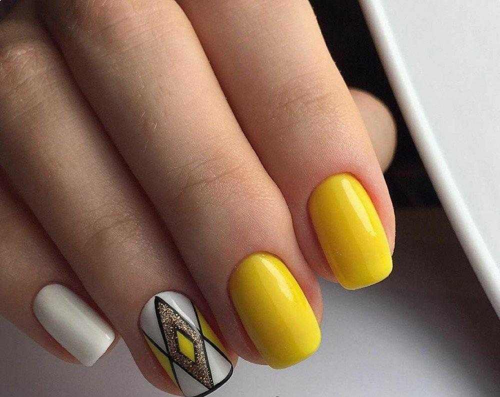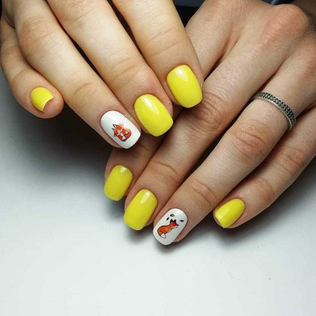 Яркое солнце так активно в июле, поэтому мы рекомендуем использовать желтый цвет в маникюре. Например, сделать матовый дизайн или нарисовать веселое солнышко на нейтральной базе.