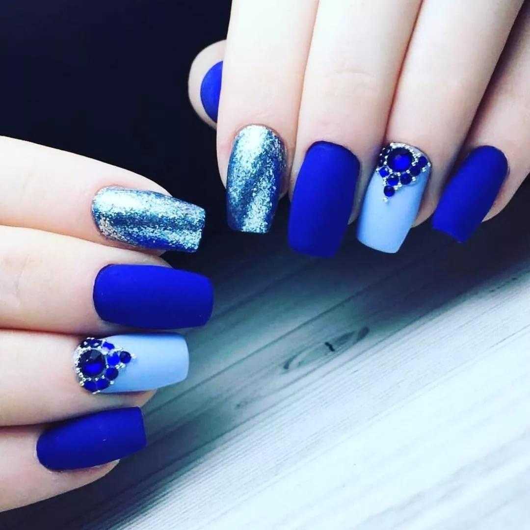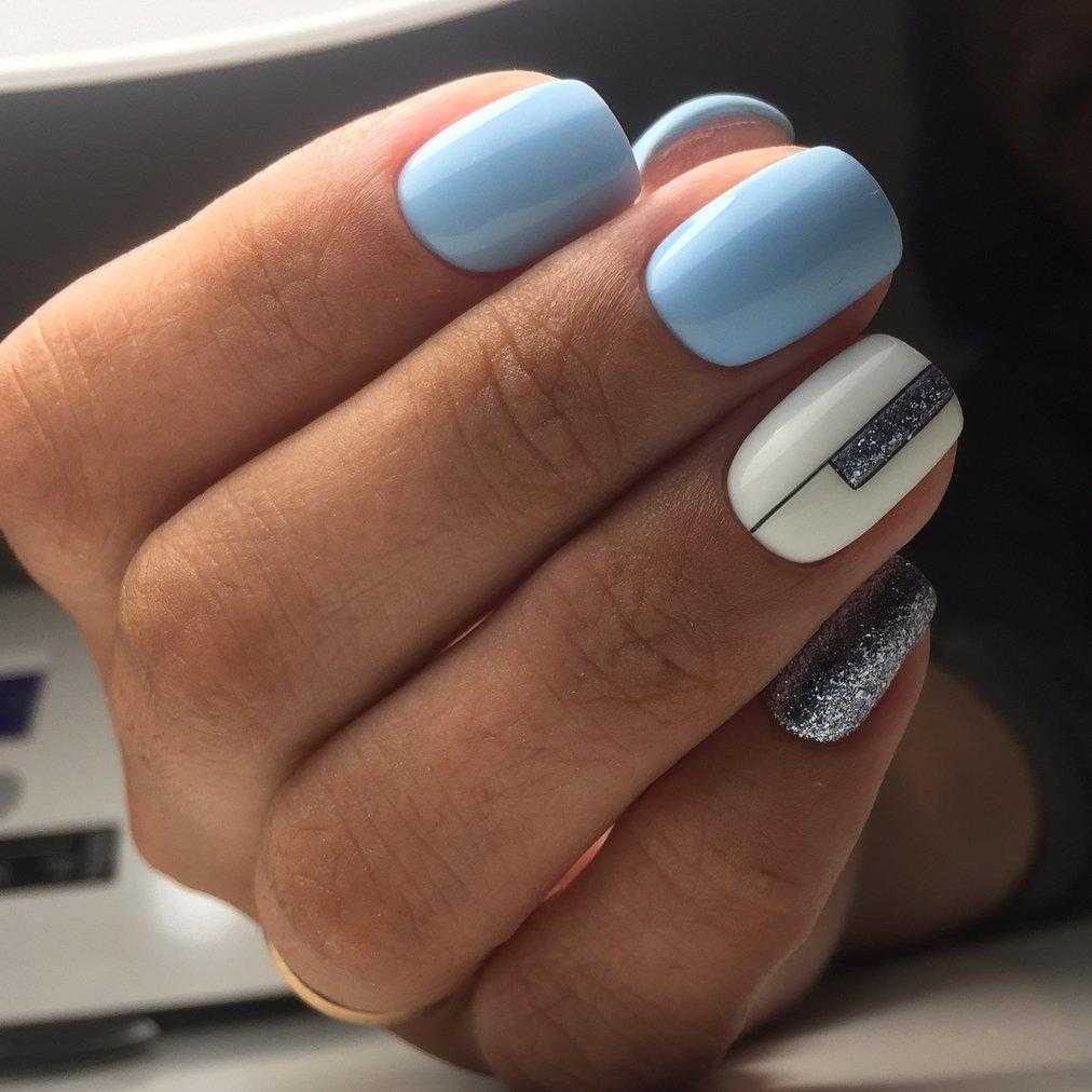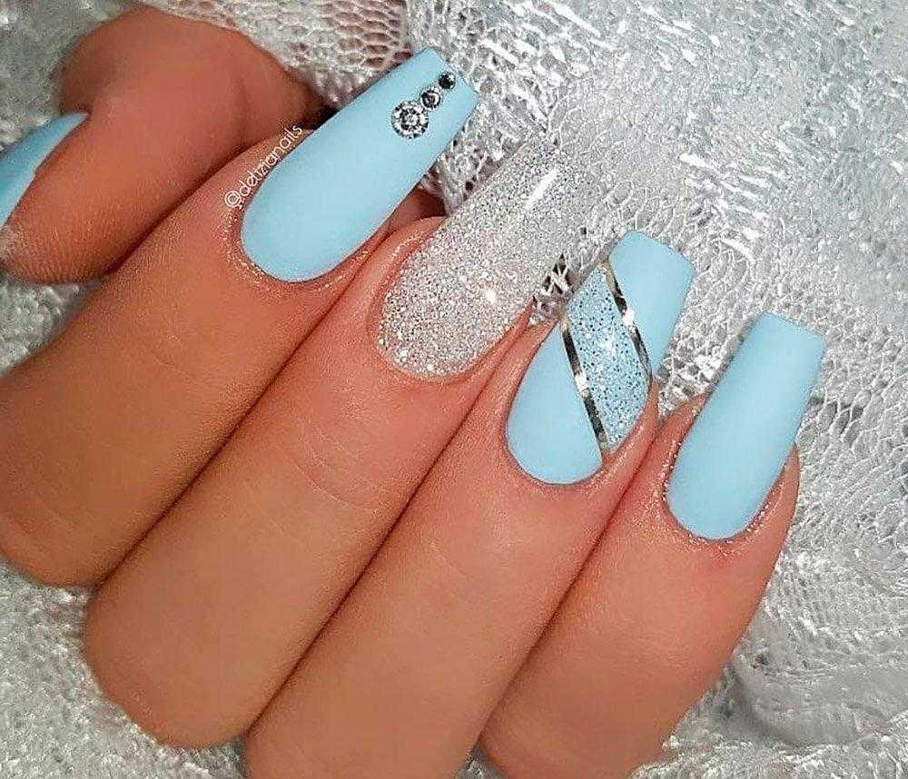 Маникюр с голубыми блестками