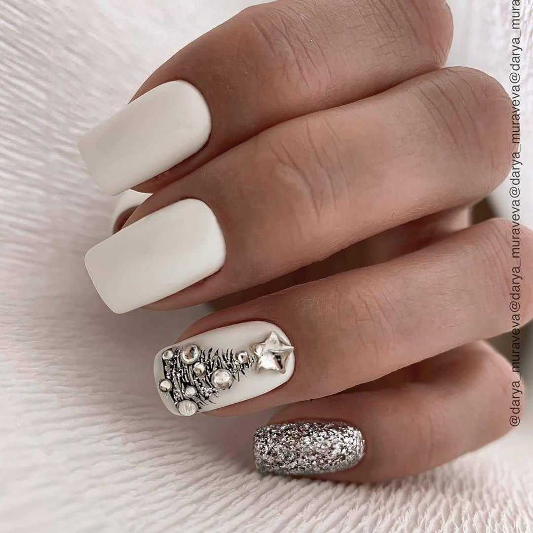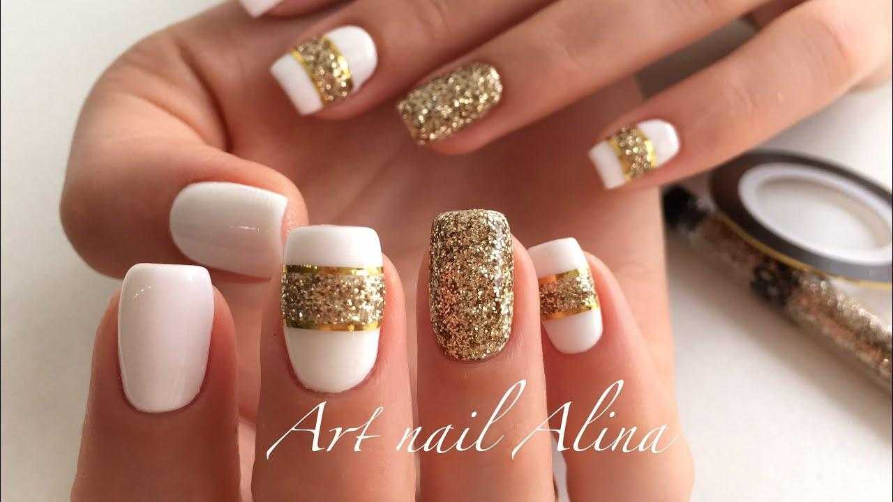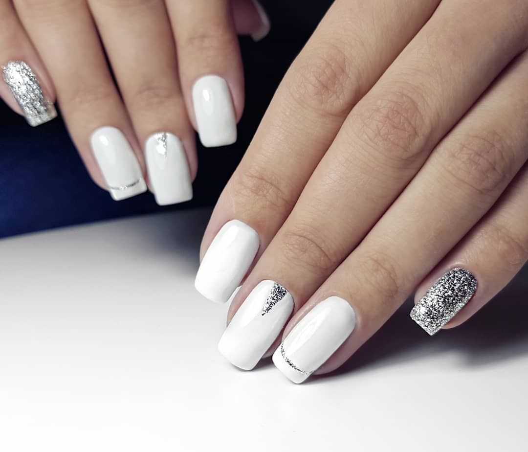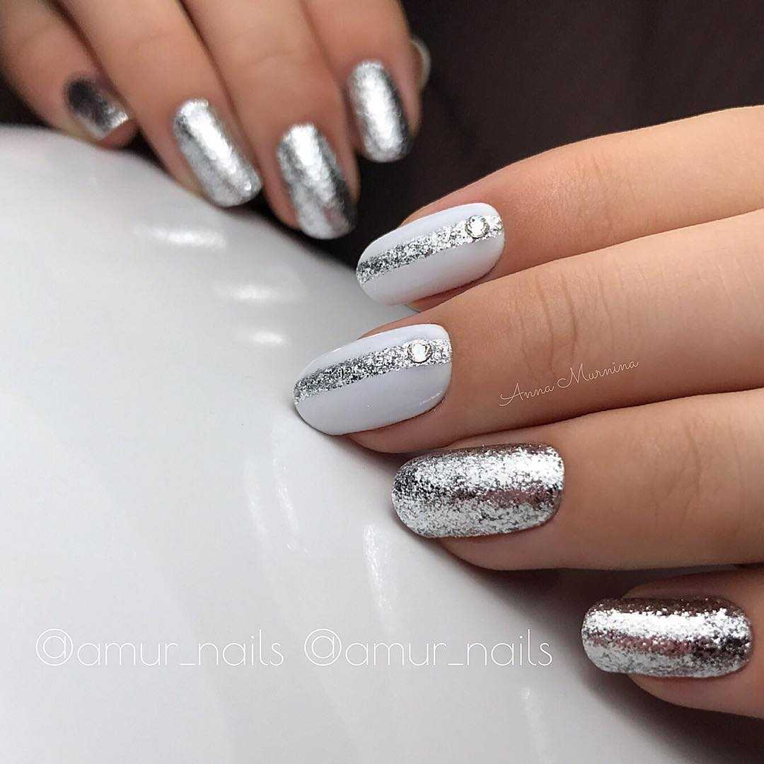 Маникюр с серебряными и золотыми блестками