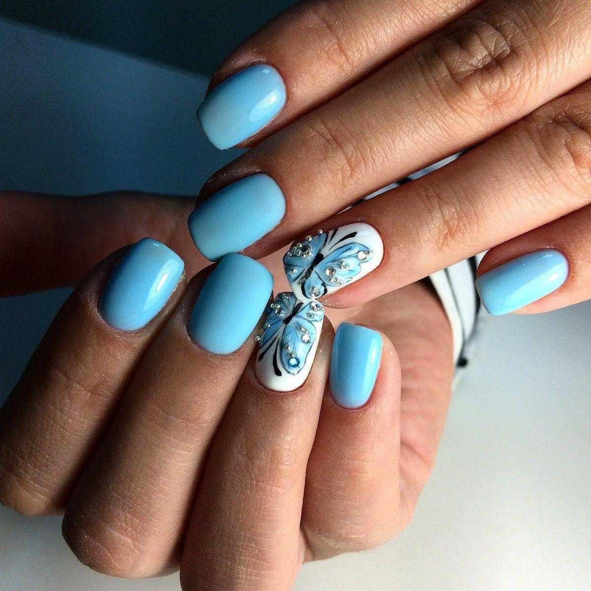 Только летом небо бывает таким высоким и голубым. Отразите это в маникюре. Яркие оттенки голубого отлично смотрятся на любой длине и форме ногтей