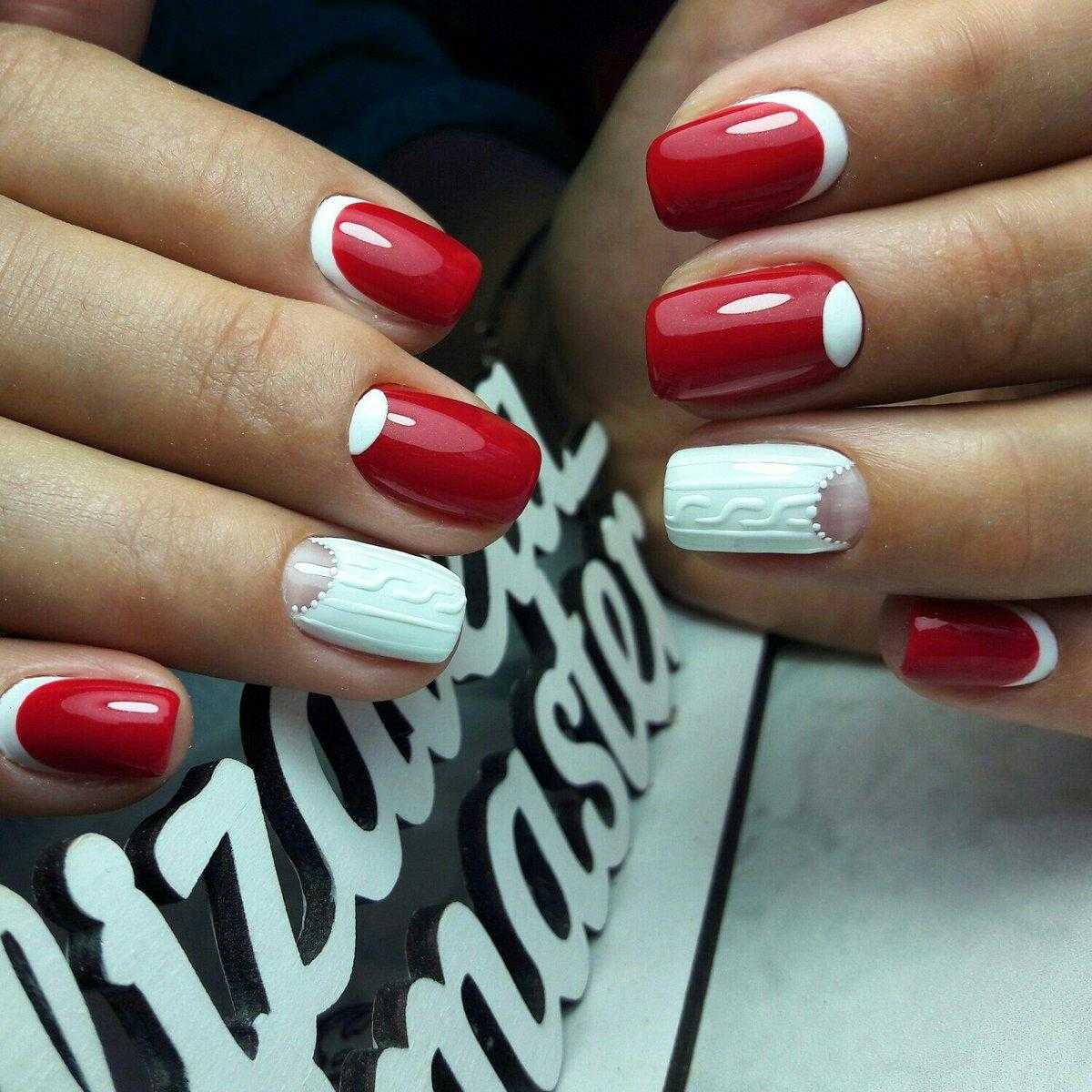Гель лаки, шеллаки красного и белого цвета на ногтях: фото сочетаний