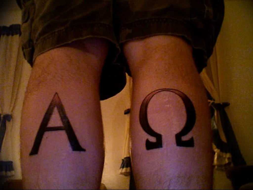 Историки предполагают, что жители Древней Греции считали букву омега символом материального мира, а букву альфа – символом духовности. В связи с этим в современном мире такая татуировка, сделанная крест-накрест означает веру во Всевышнего и единство разума и духа.