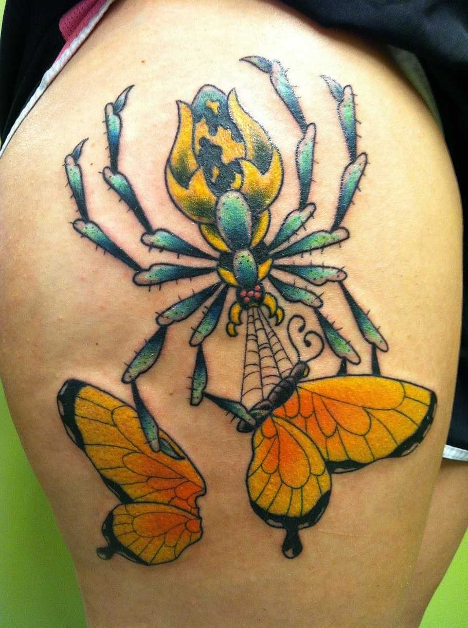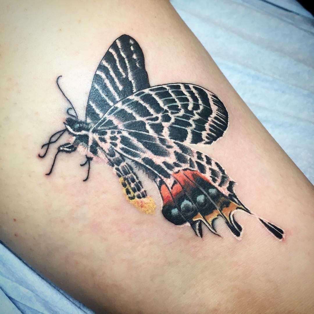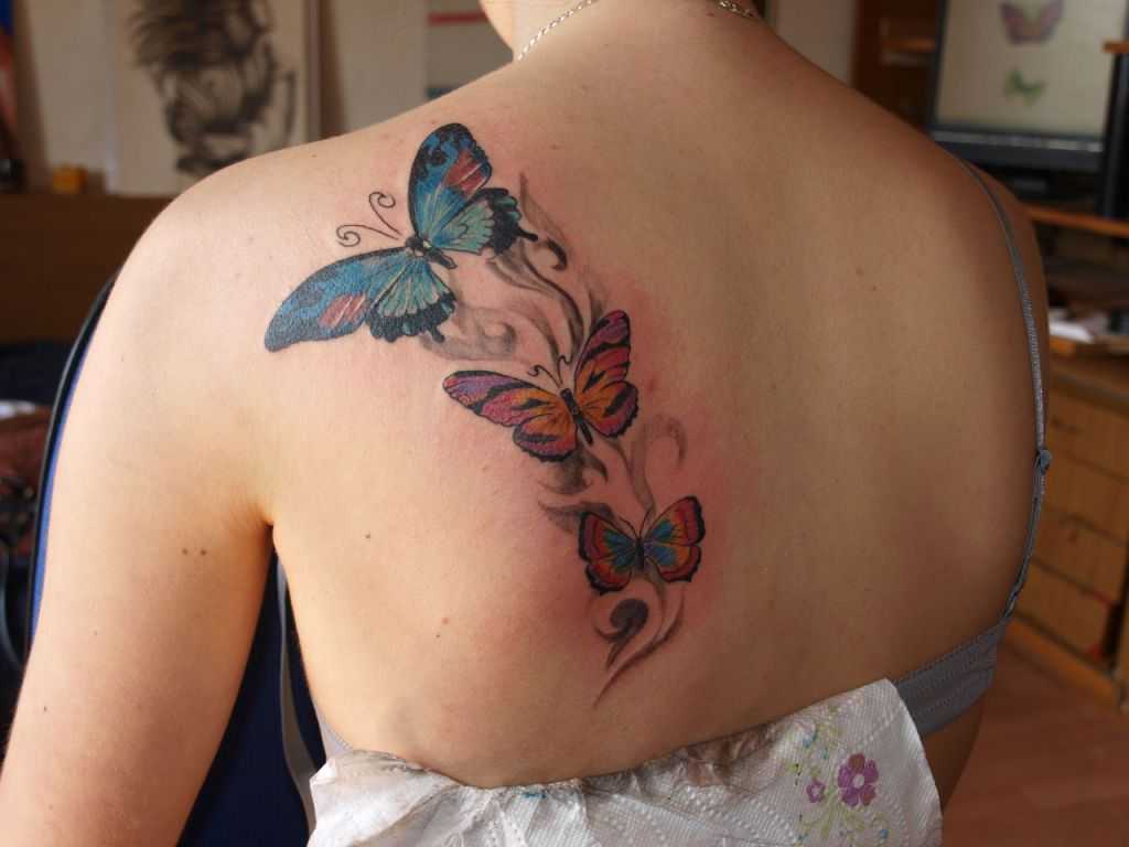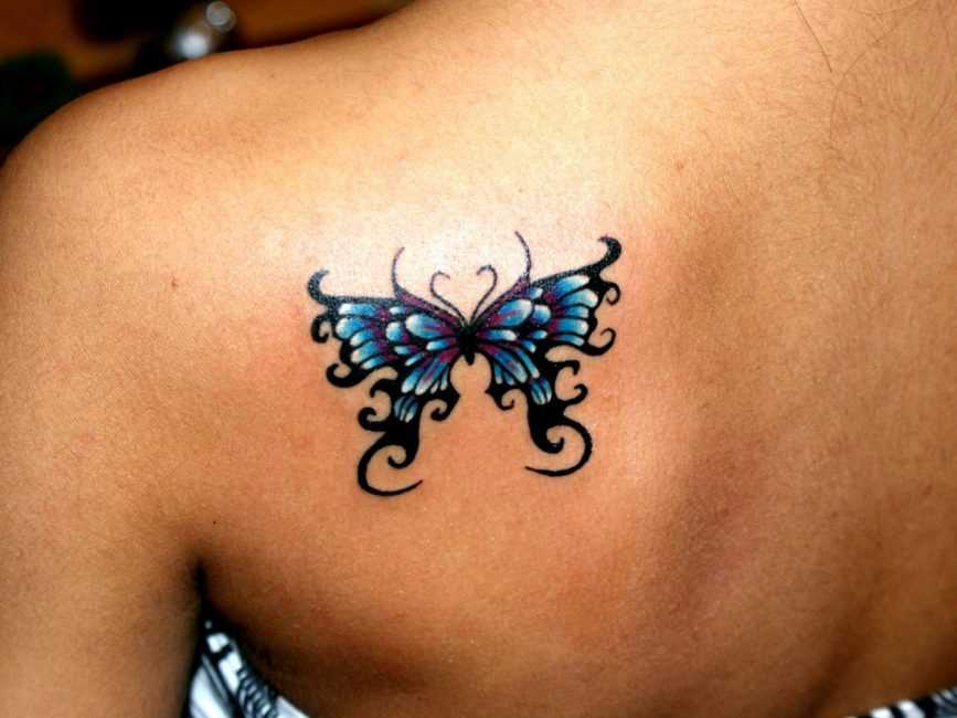 Бабочка считается символом хрупкости, нежности и красоты. Большое разнообразие этих насекомых, обитающих в самых отдаленных уголках мира, позволяет художникам реализовать любые фантазии, относительно вида и расцветки тату. В зависимости от расположения и эскиза изображение бабочки может иметь различное значение.
