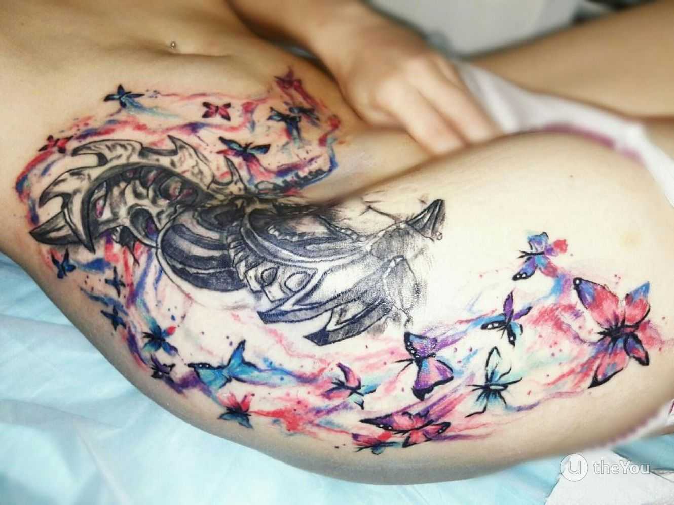 Цветная тату бабочка станет оптимальным вариантом для ярких, неординарных, творческих личностей и всех тех, кто предпочитает буйство красок и ищет, где лучше сделать тату.