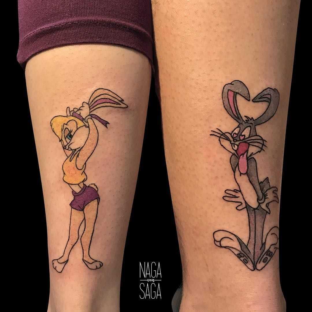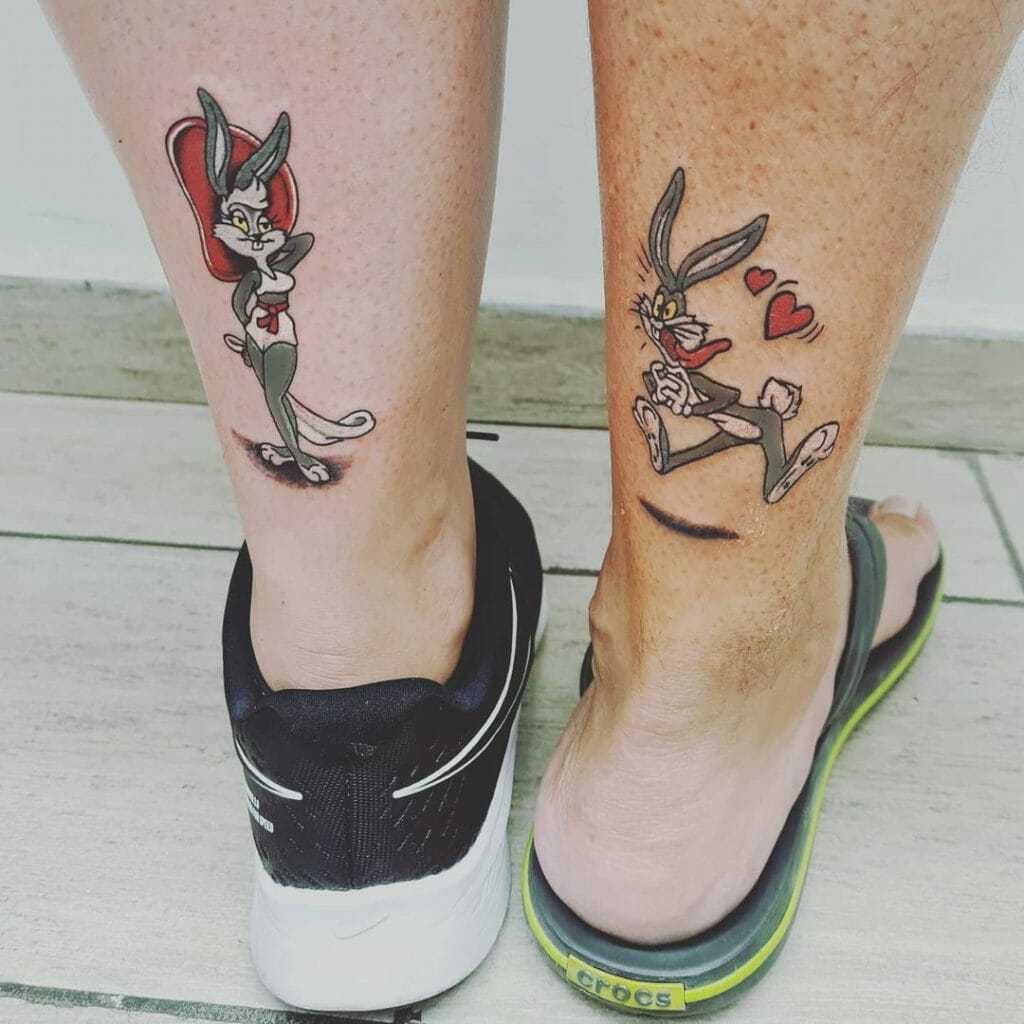 The Bugs Bunnies Couple Leg Tattoos