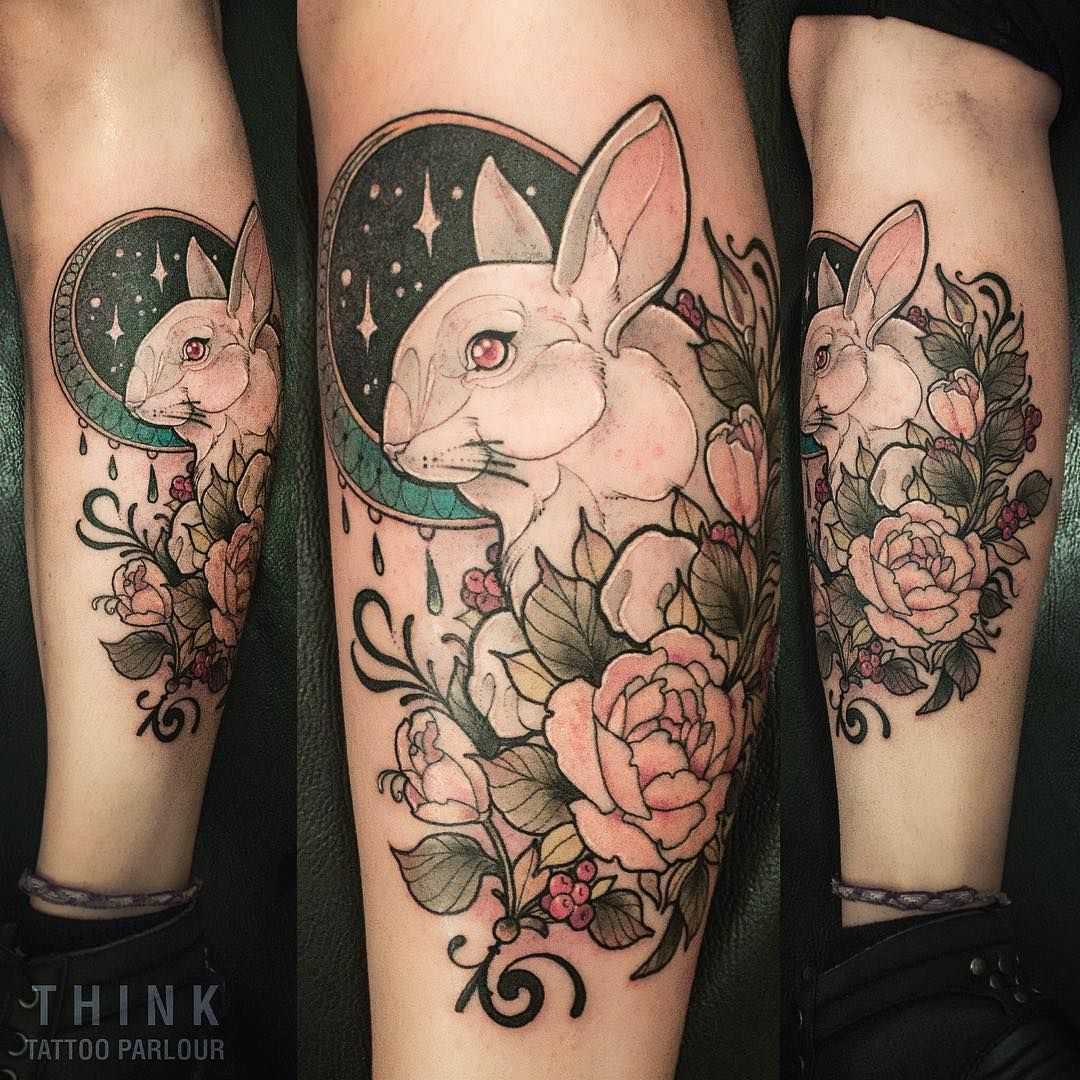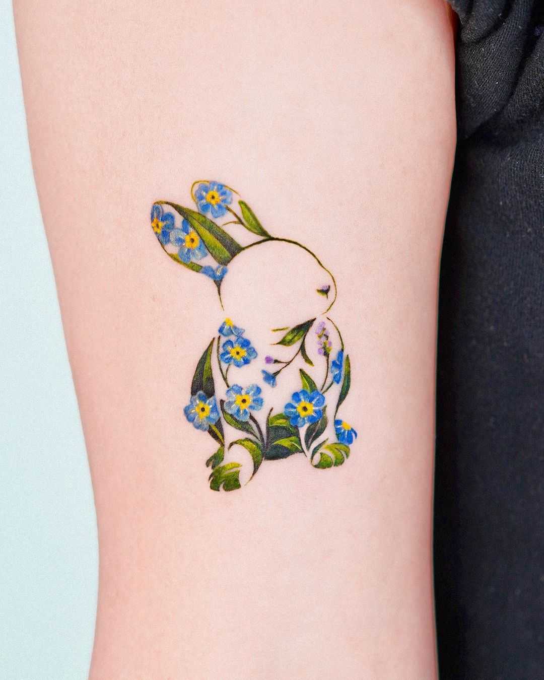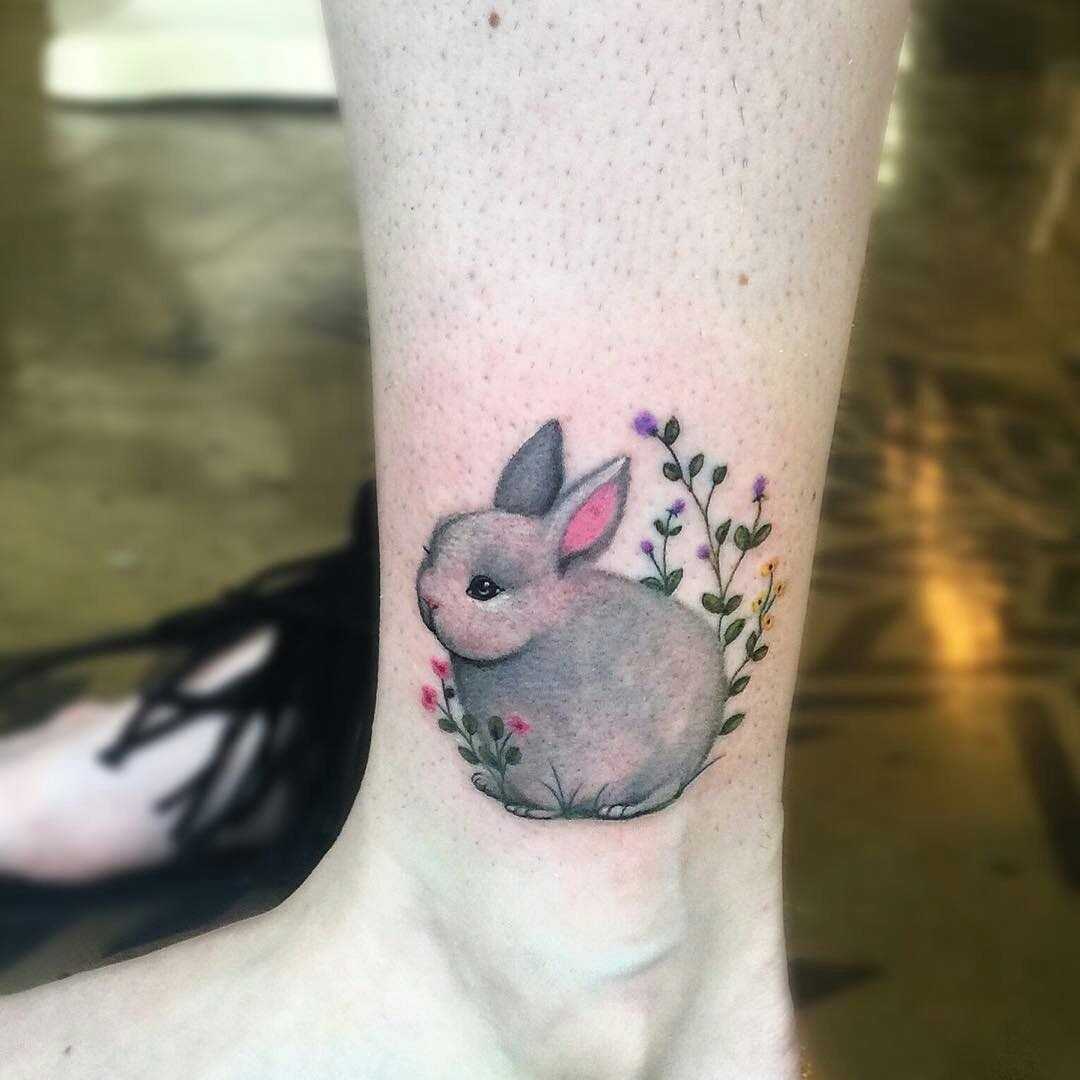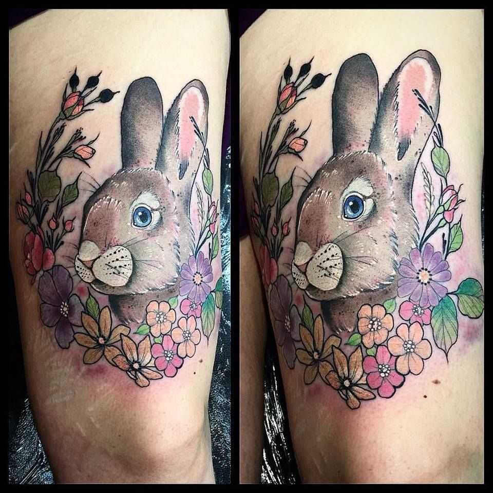 3. Floral Bunny Tattoos: Combining the delicate beauty of flowers with the charm of bunnies, floral bunny tattoos create a stunning and feminine design. These tattoos often feature bunnies adorned with floral wreaths or surrounded by blooming flowers. Floral elements can be customized to represent specific flowers with personal meanings.