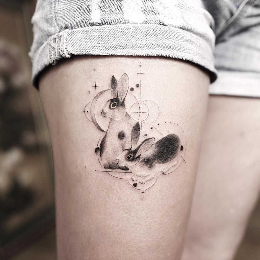 2. Geometric Bunny: Combining the precision of geometric shapes with the softness of bunny imagery, a geometric bunny tattoo offers a unique and modern twist. These designs often feature angular lines and abstract patterns, adding an extra layer of depth and intrigue to the tattoo.
